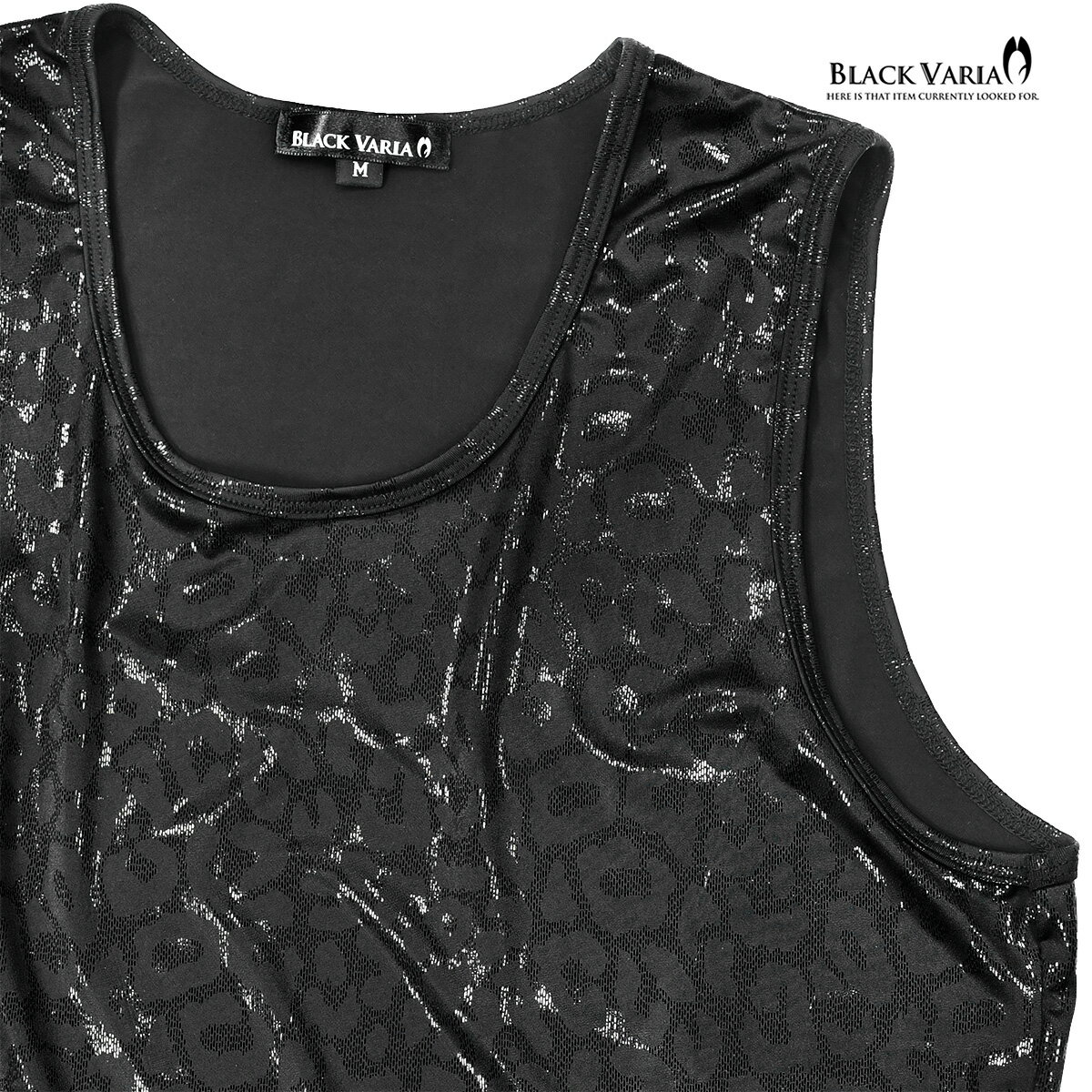 タンクトップ ヒョウ柄 箔プリント レオパード メンズ ストレッチ 光沢 細身 タンク mens ファッション おしゃれ (ブラック黒) 213102