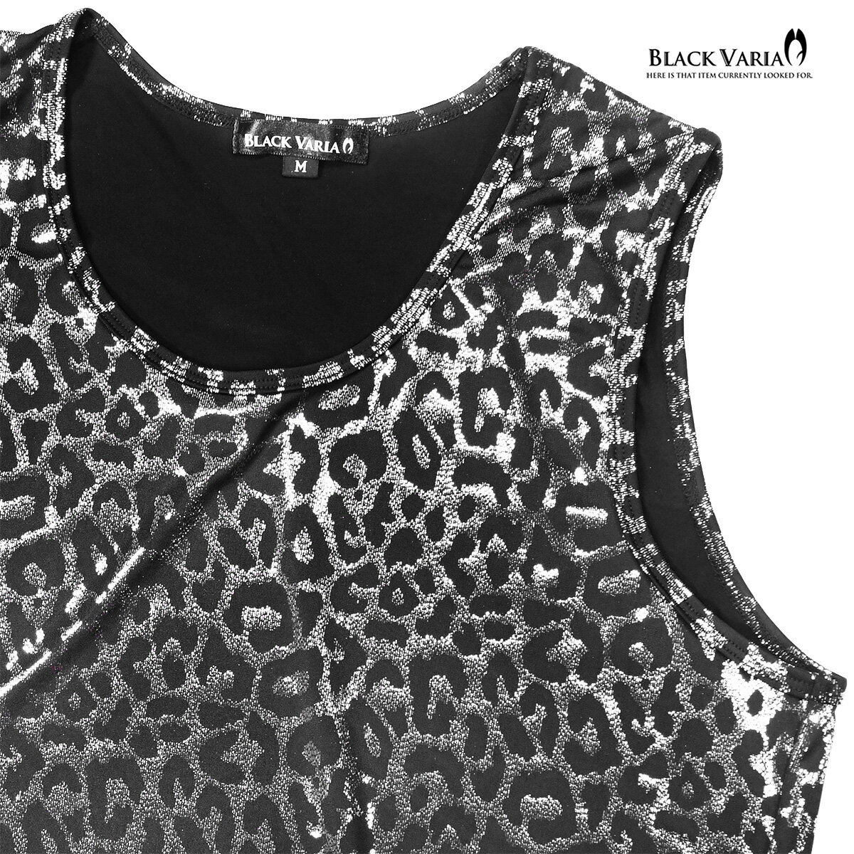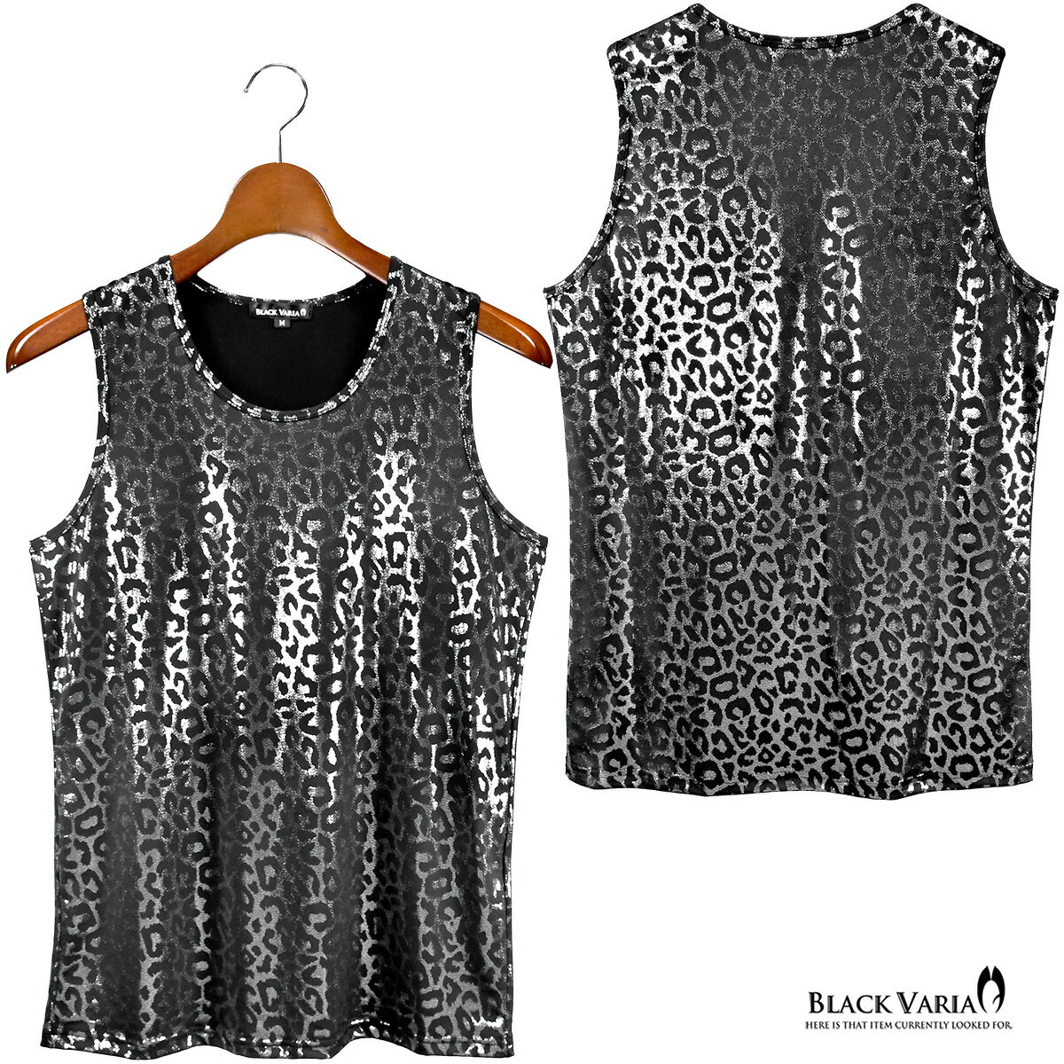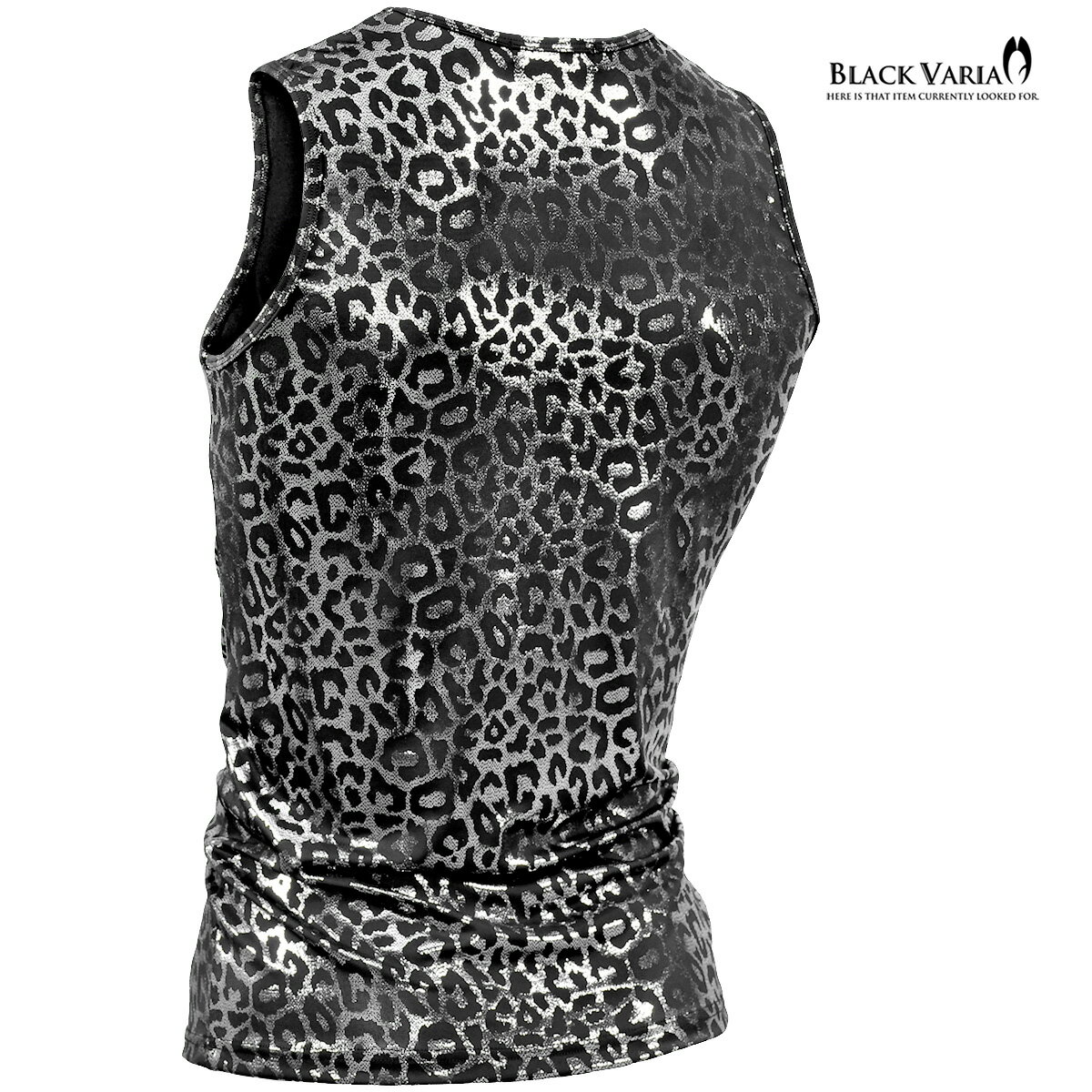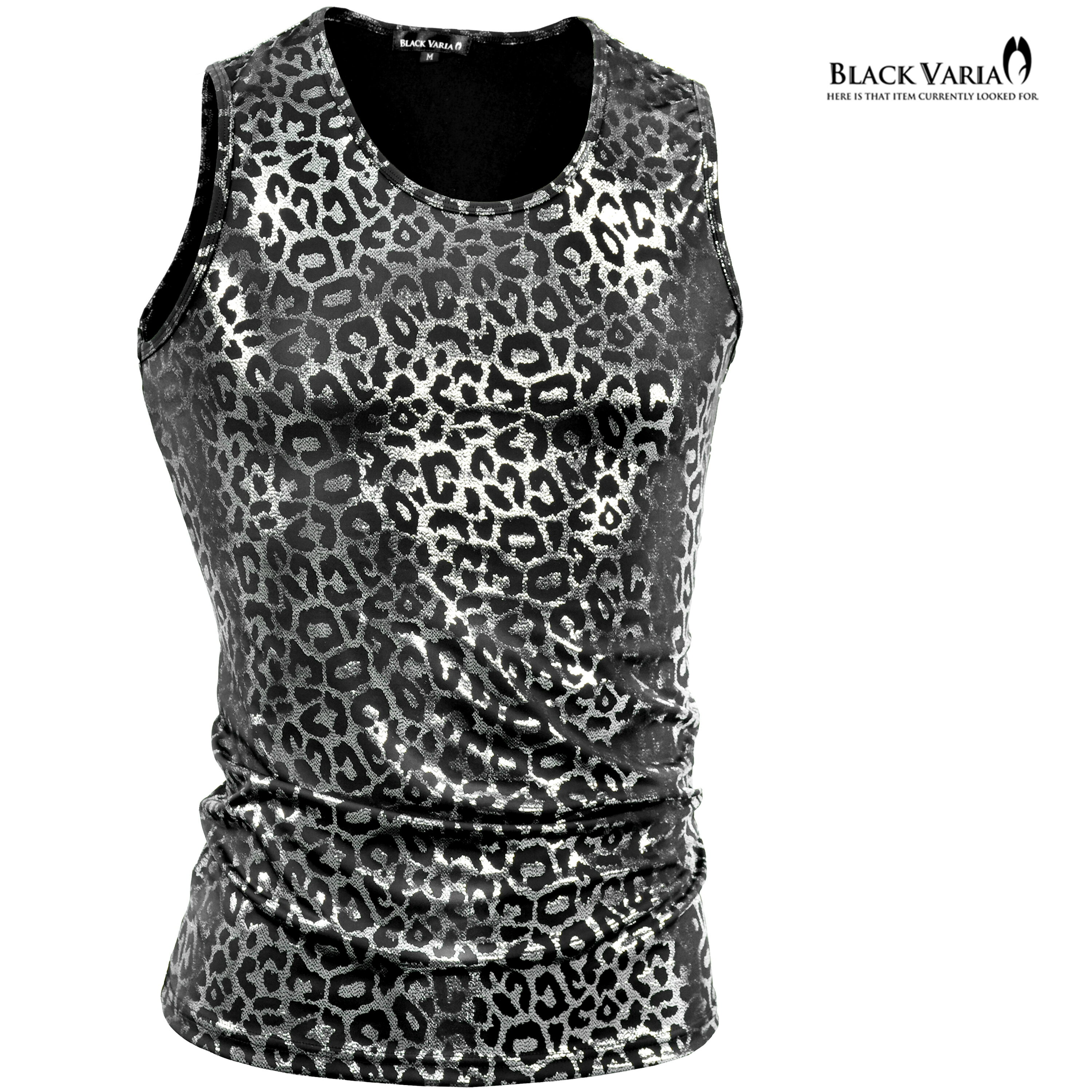タンクトップ ヒョウ柄 箔プリント レオパード メンズ ストレッチ 光沢 細身 タンク mens ファッション おしゃれ (シルバー銀) 213102