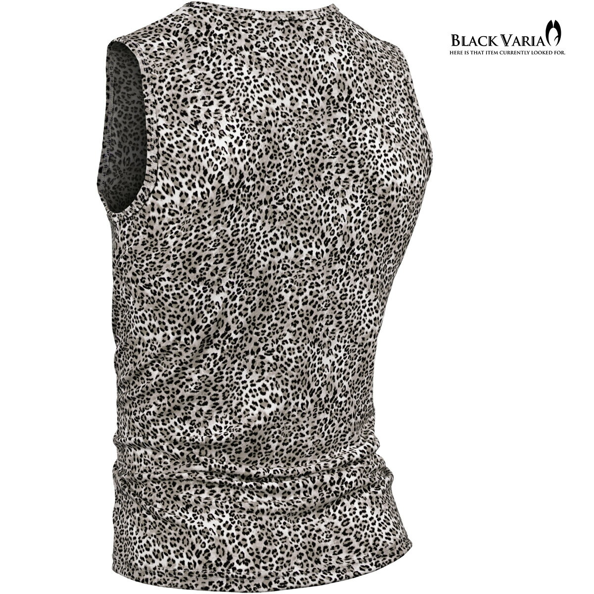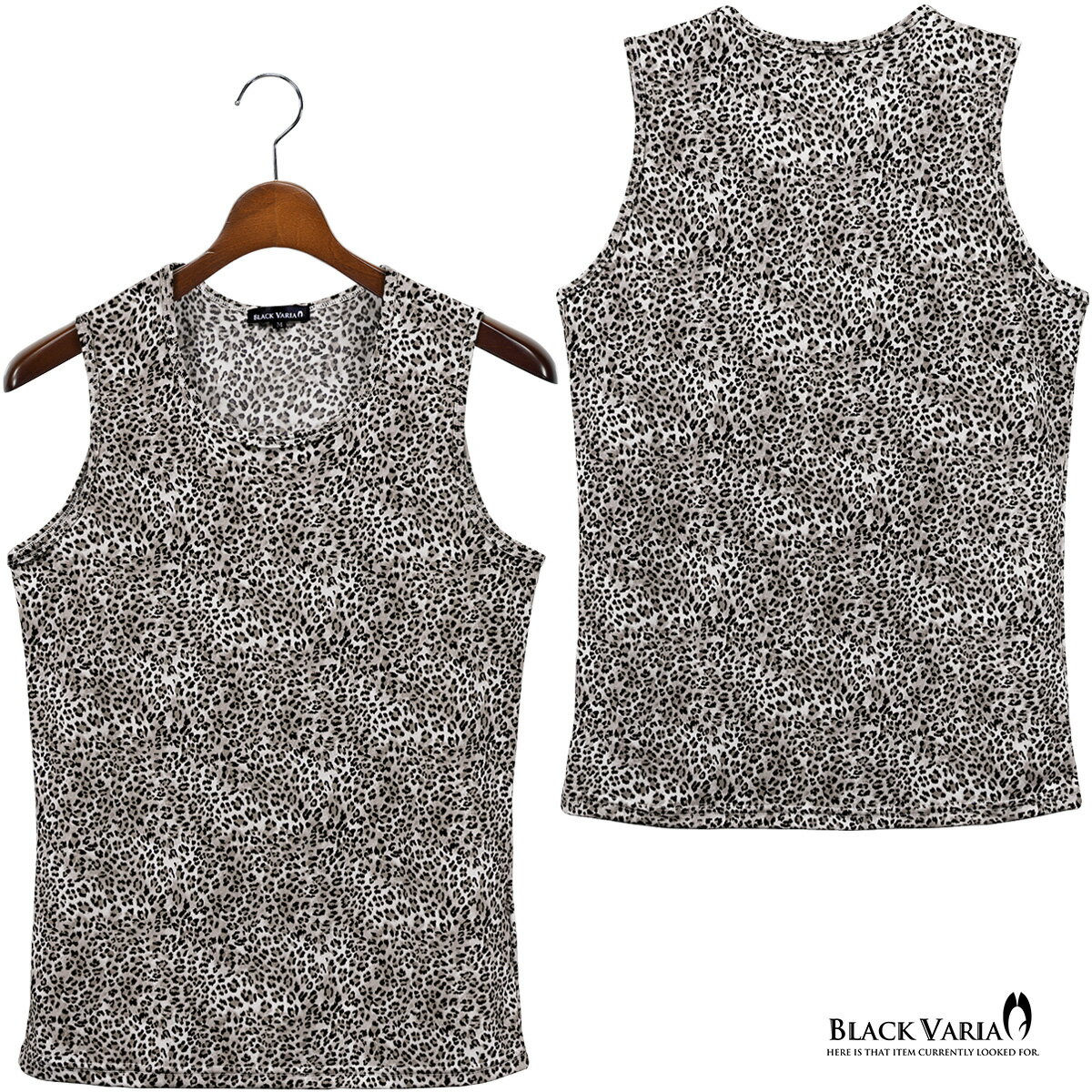 タンクトップ ヒョウ柄 メンズ ストレッチ 細身 タンク mens ファッション おしゃれ(グレー灰) 233155