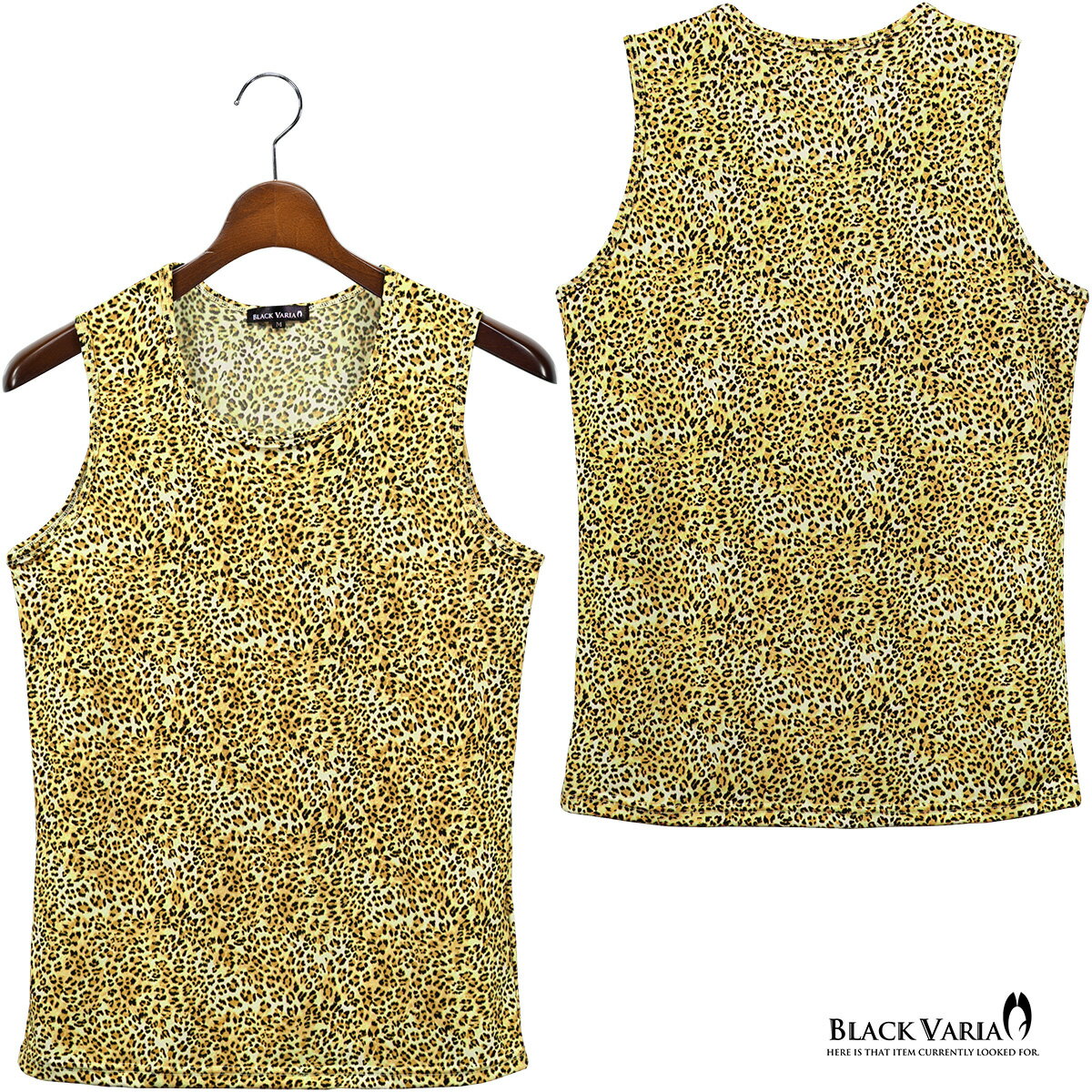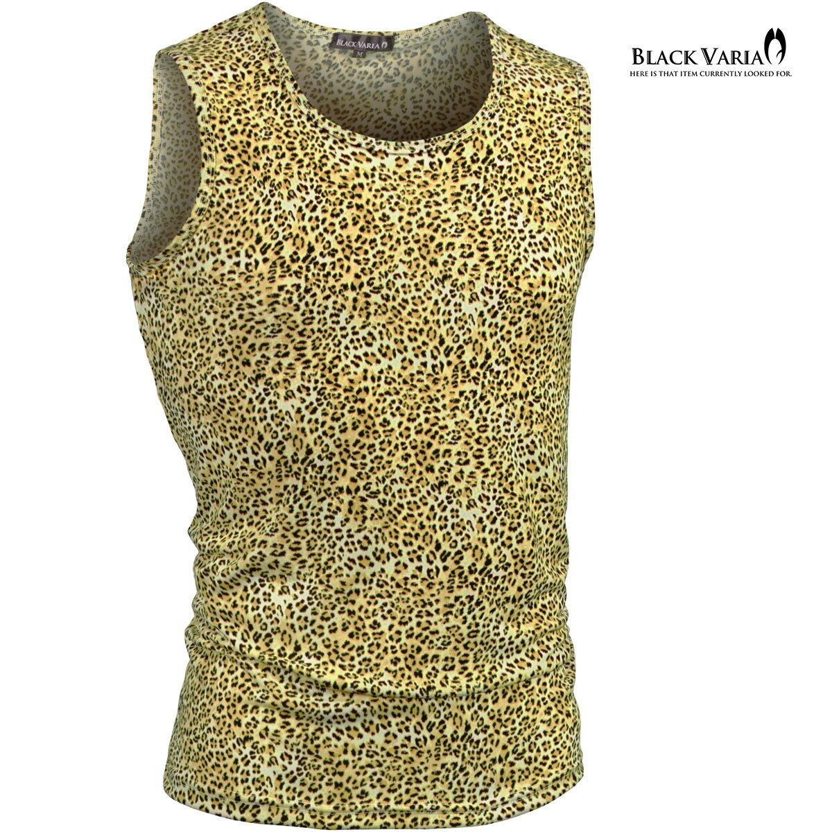 タンクトップ ヒョウ柄 メンズ ストレッチ 細身 タンク mens ファッション おしゃれ(イエロー黄) 233155
