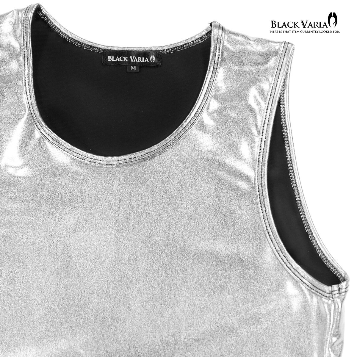 タンクトップ 光沢 メタリック 箔 メンズ 日本製 ストレッチ 細身 タンク スリム mens ファッション おしゃれ(シルバー銀) 233160