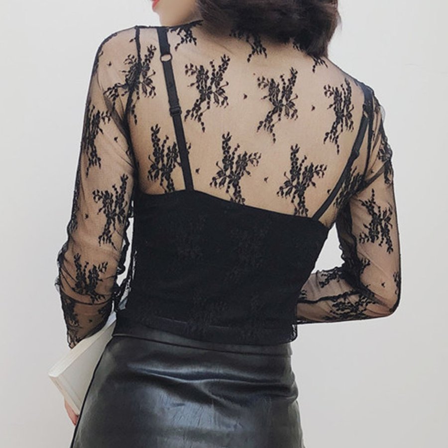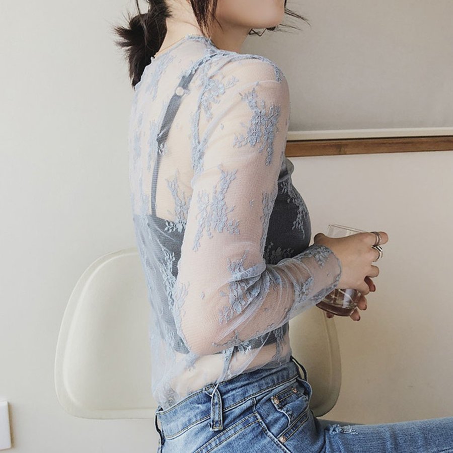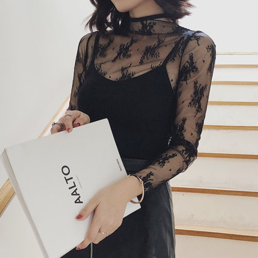 レース チュール トップス レディース ハイネック レースインナー シースルー 長袖 トップス【ネコポス可】