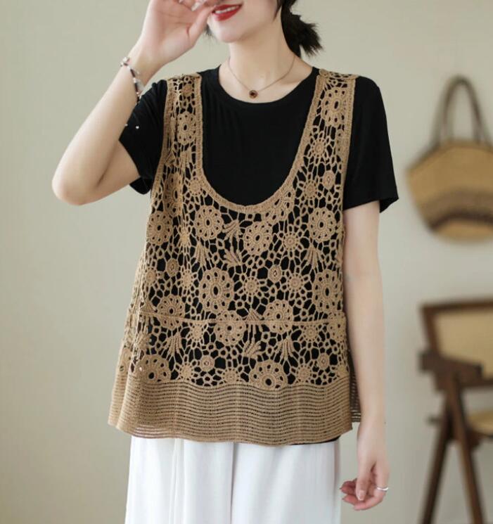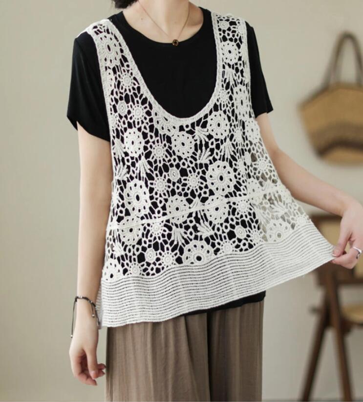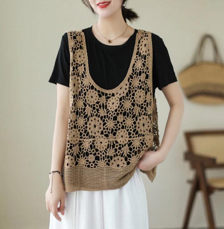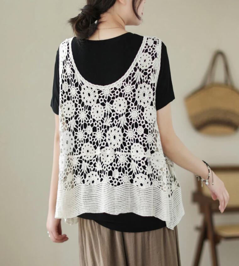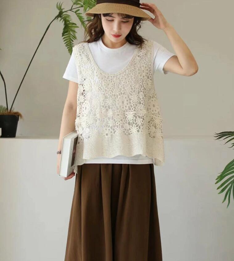 一部即納 ベスト レースベスト レディース 透かし編み ベスト レディース 春 夏 ニットベスト かぎ編み 涼やか カジュアル レイヤード ニットベスト ノースリーブ サマーニット おしゃれ きれいめ