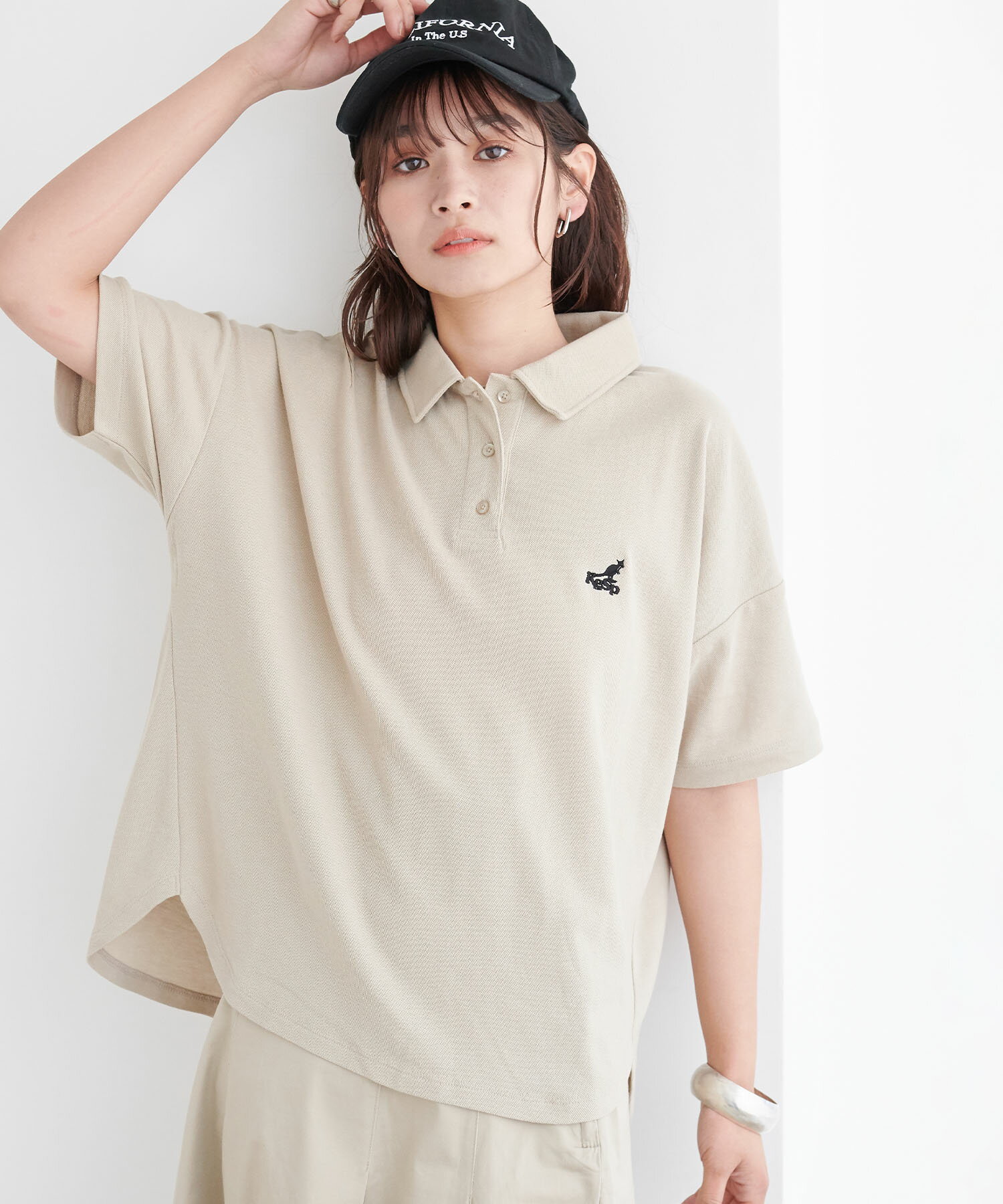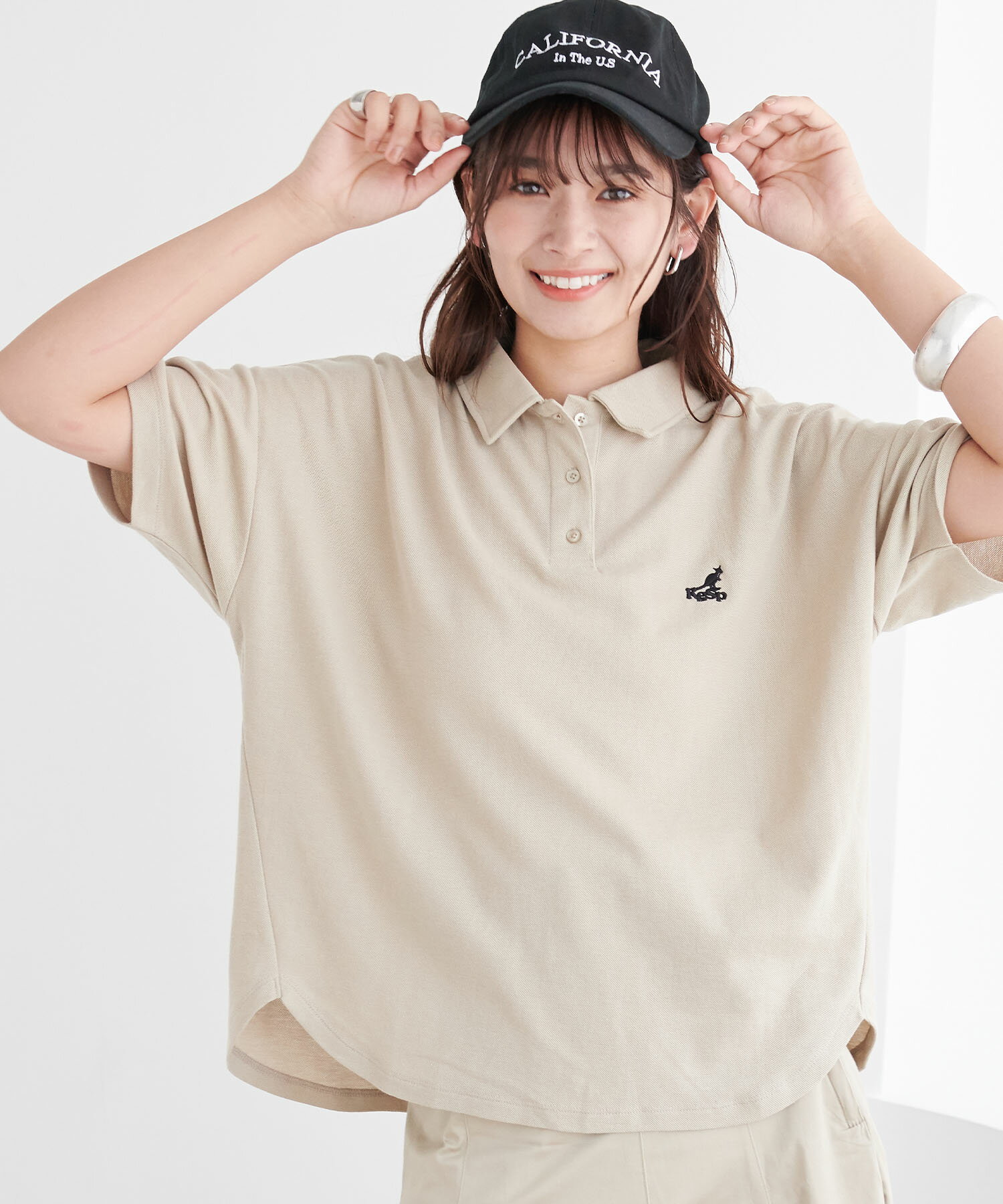 シンプルロゴポロシャツ【KANGOL SPORT/カンゴールスポーツ】UVカット 吸水速乾 ポロシャツ スキッパー オーバーサイズ トップス tシャツ プルオーバー ビッグシルエット 7分袖 半袖 半そで 五分袖 五分 ゆったり カジュアル KANGOL SPORT カンゴールスポーツ