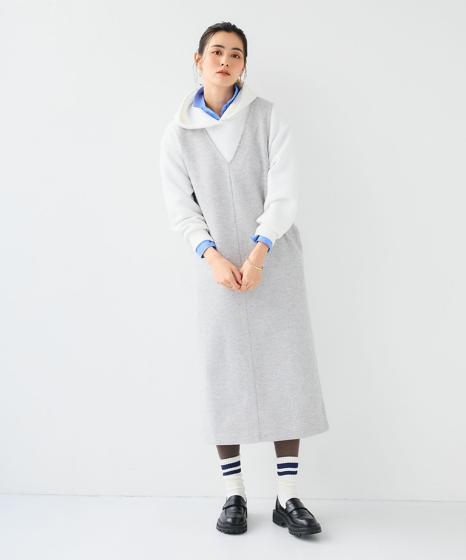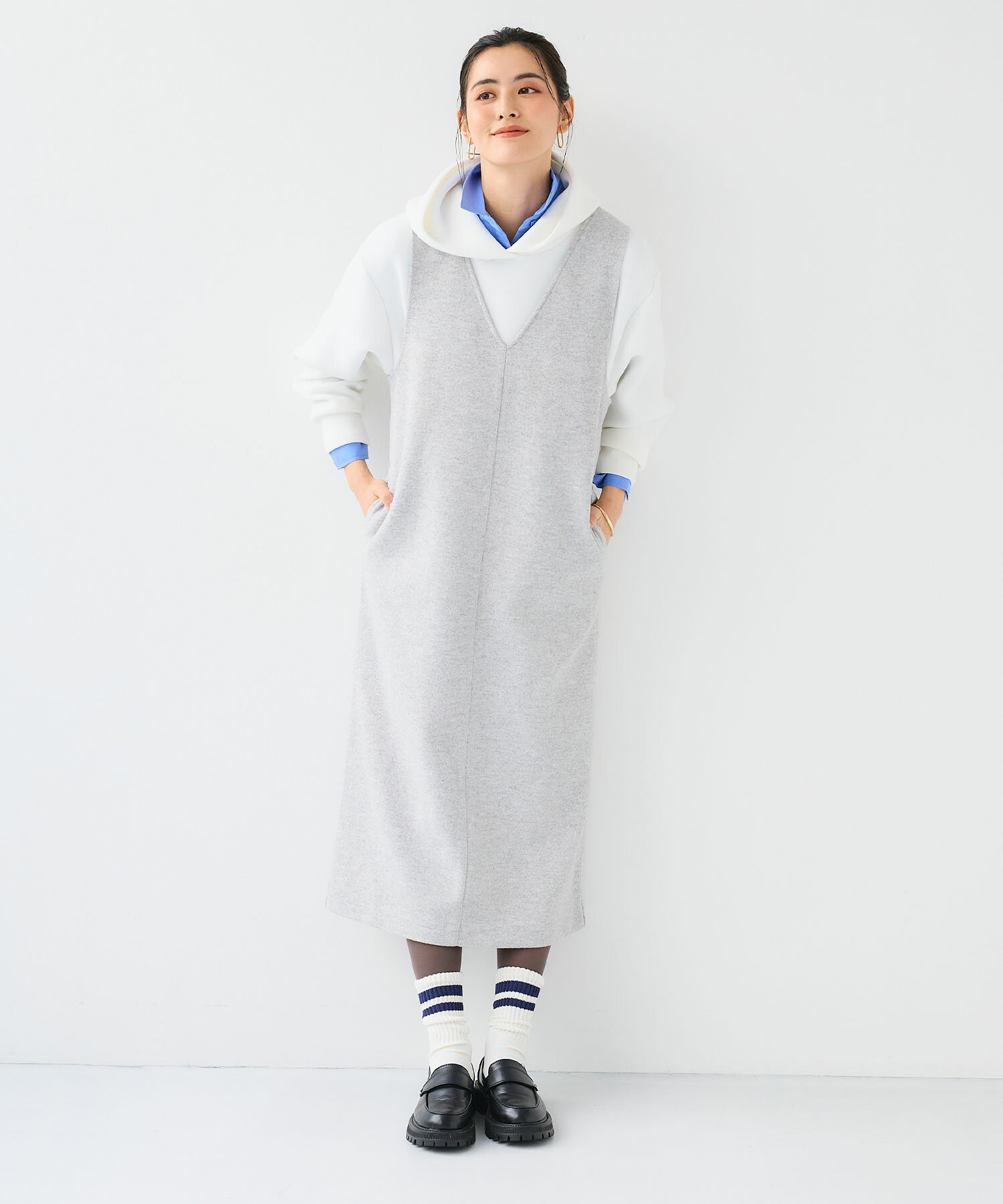 【30%OFFクーポン!10/28 9:59迄】《洗える・ストレッチ》ウールライク ジャンスカ ジャンパースカート ワンピース きれいめ レディース カジュアル ロング ロングワンピース ゆったり Vネック ポケット付き ポケット CF クロスファンクション