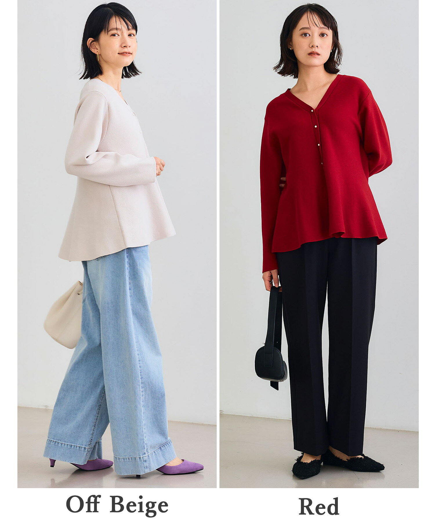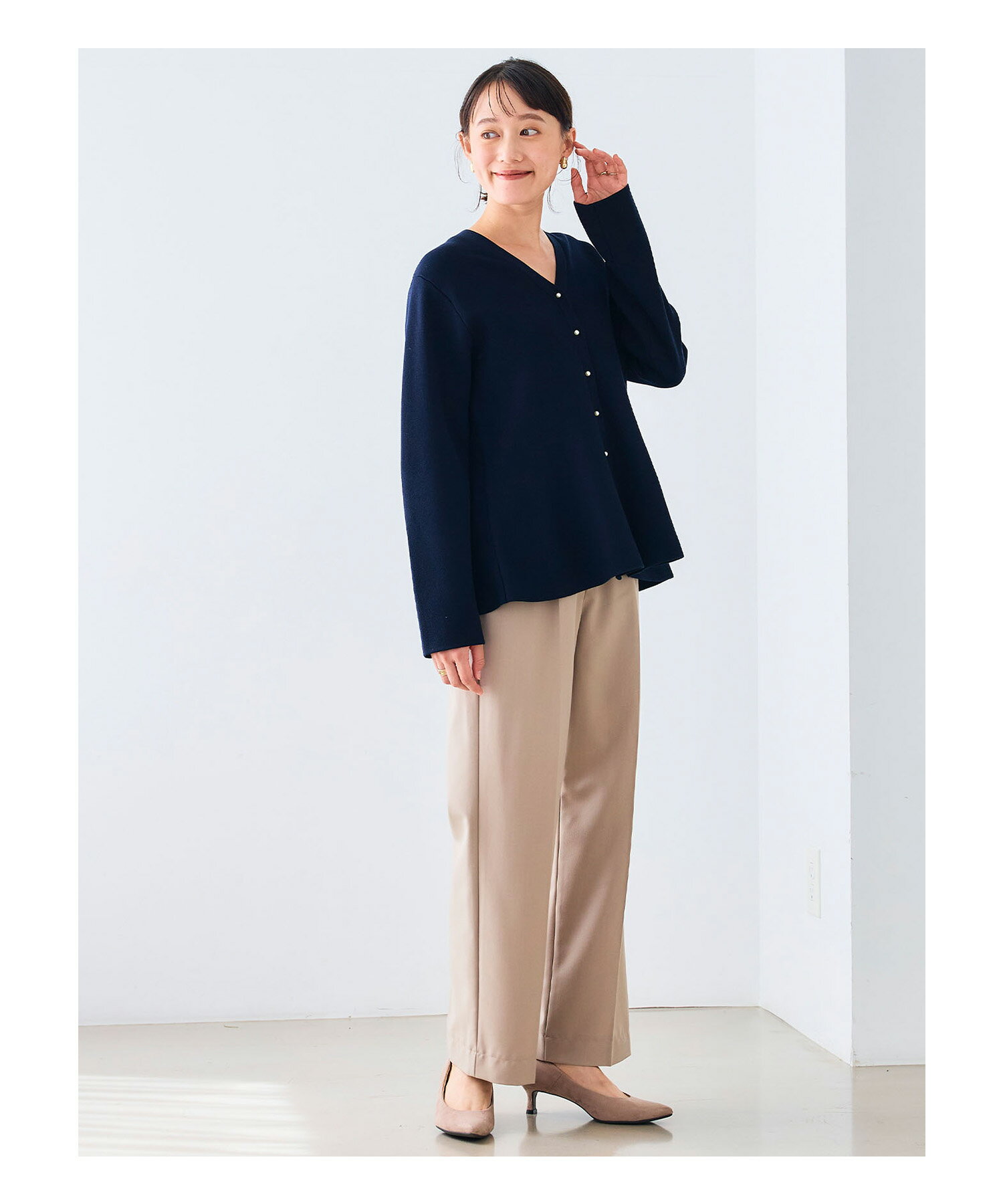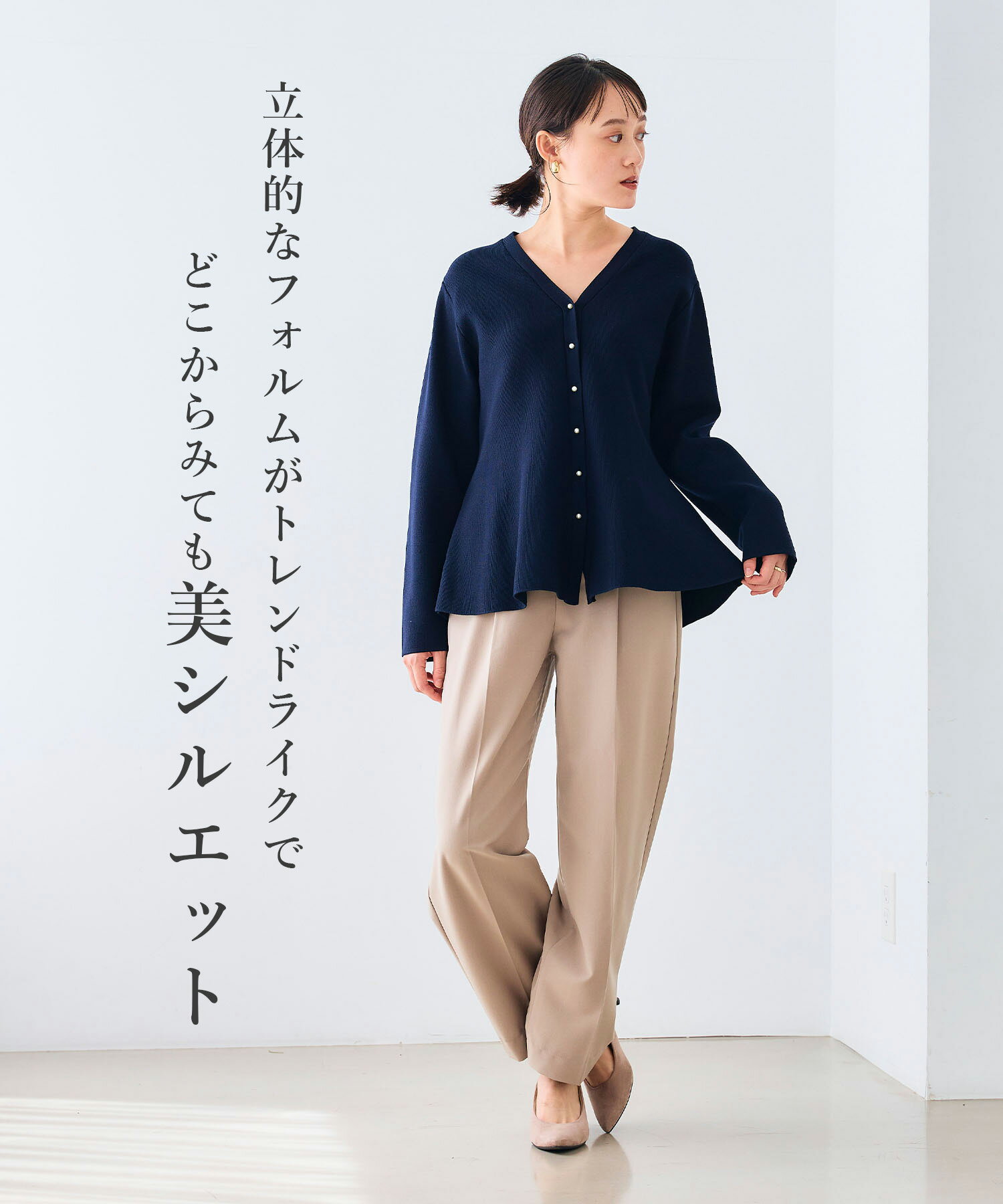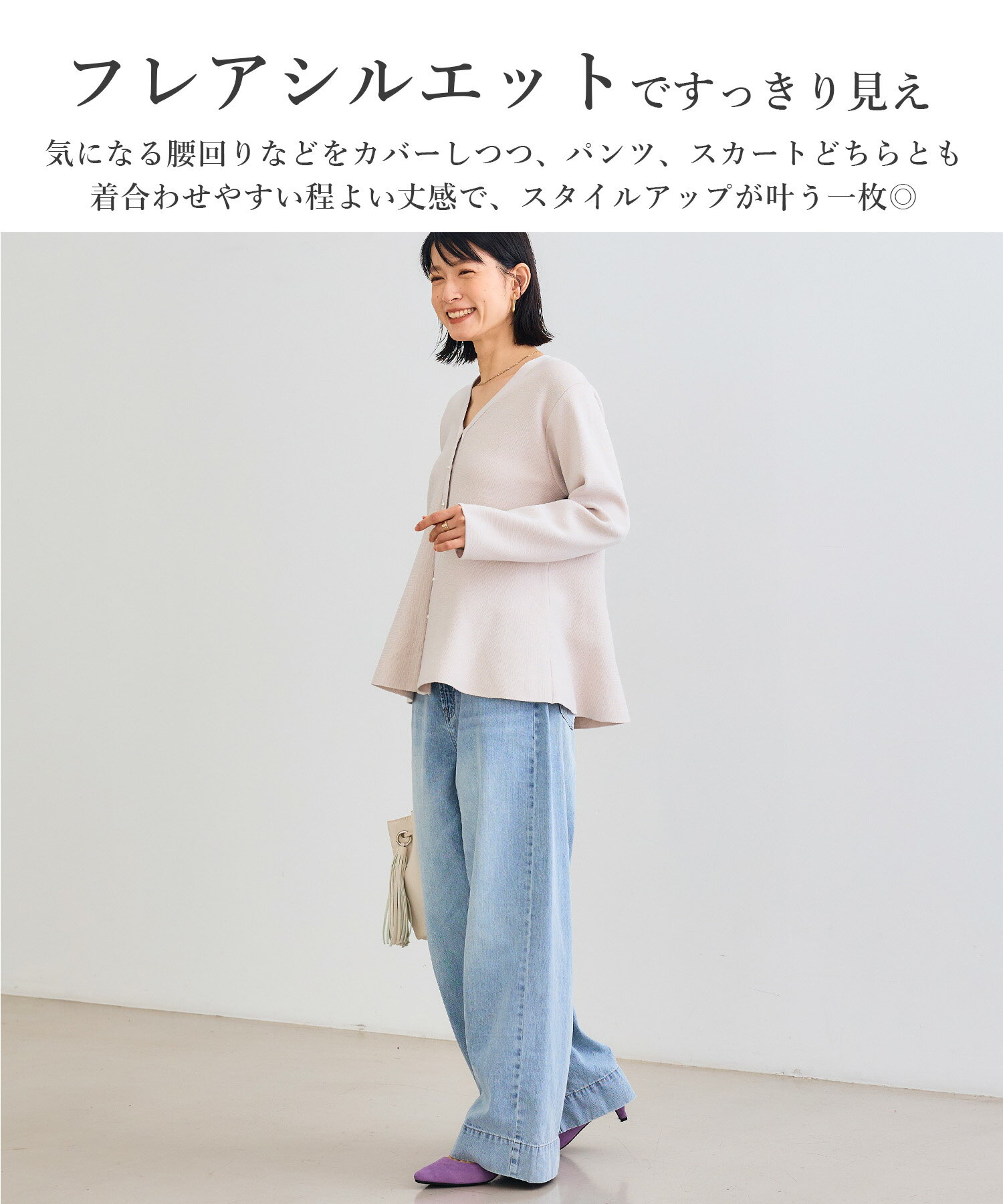 《洗える》サマ美え マシュマロミラノAラインペプラムカーディガン【CF/クロスファンクション】 Aライン カーディガン ニット 洗える タンブル乾燥可 ペプラム ペプラムニットカーディガン カーディガン ニットカーデ ジャケット トップス 長袖 Vネック 秋 冬