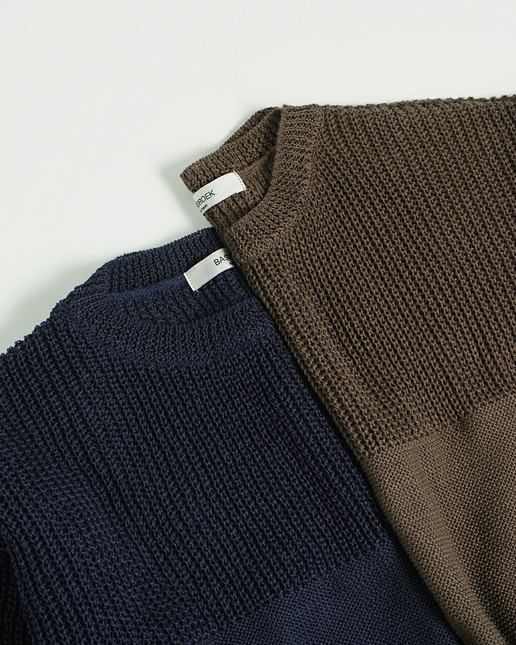 バージスブルック BASISBROEK ギマコットンニットプルオーバー メンズ BRAFFEN ブラウン ネイビー25114N リネンライク ドライタッチ 通気性 手洗い可能 0328 xp10