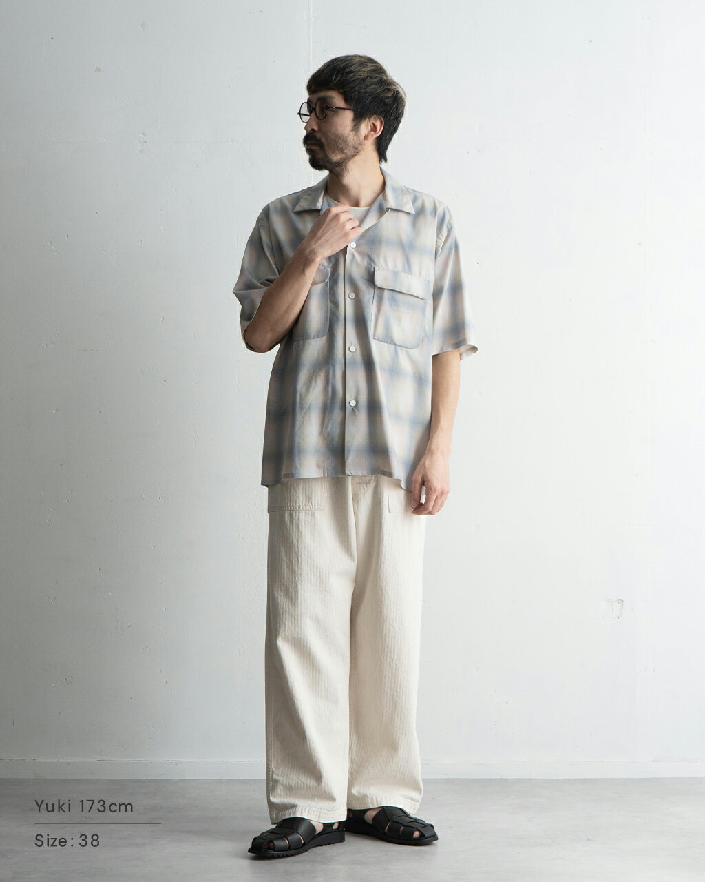 キャプテンサンシャイン KAPTAIN SUNSHINE オープンカラー 半袖シャツ メンズ Open Collared SS Shirt サマーウール Super140's オンブレーチェック ウォッシャブル ネイビー ブルー KS25SSH04 0418