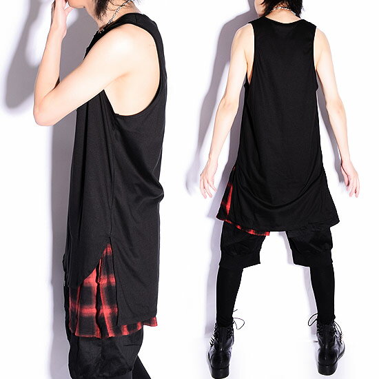タンクトップ メンズ ロング丈タンクトップ カットソー 変形 バイカラー 無地 プリント ブラック 黒 送料無料 春 夏 新作 お兄系 ホスト V系 ビジュアル系 モード系 ストリート系 個性的 衣装 日本製 ファッション AS SUPER SONIC アズスーパーソニック