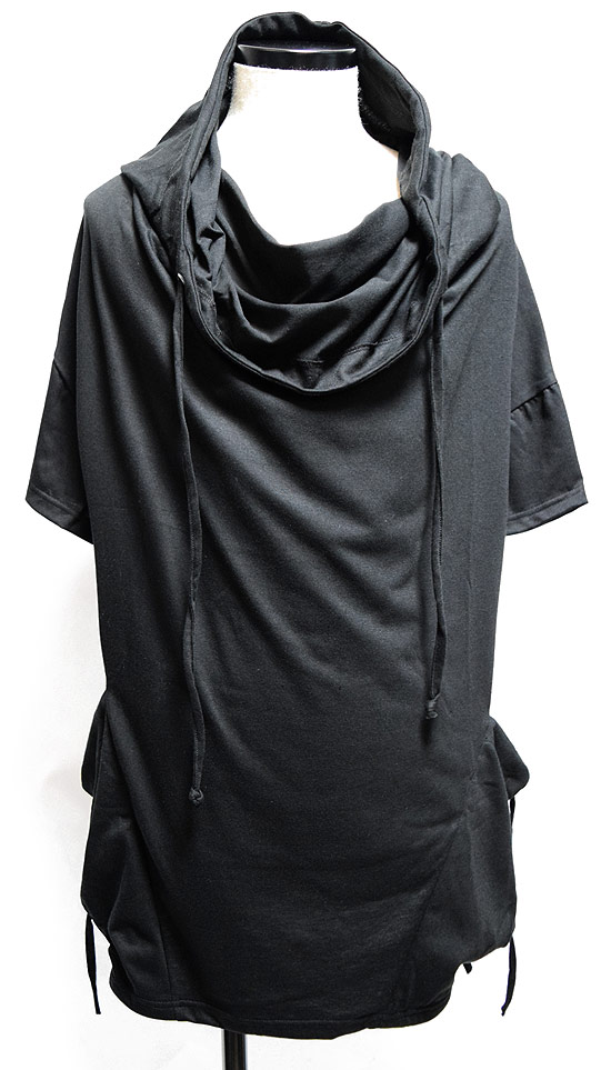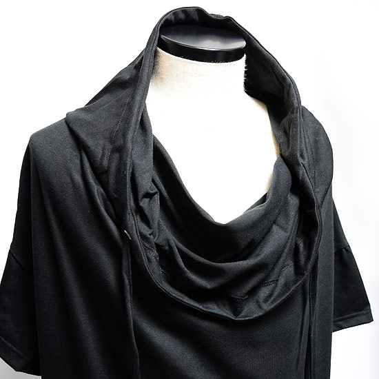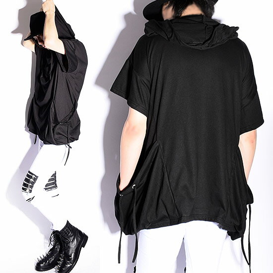パーカー メンズ Tシャツ 変形 フード ドレープ カットソー ガスマスク ビックtシャツ 無地 送料無料 春 夏 新作 ホスト V系 ビジュアル系 モード系 ストリート系 個性的 衣装 日本製 Alleglo オリジナル ブランド ファッション 韓国 ブラック 黒