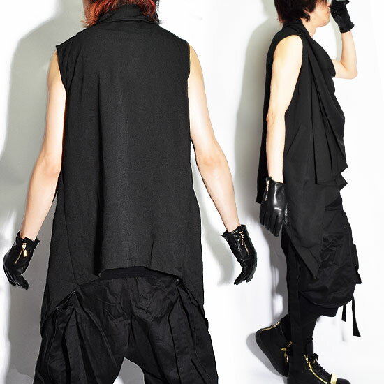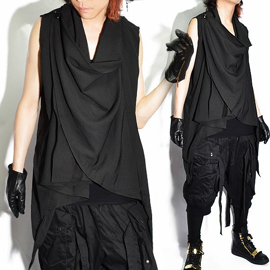 ドレープジャケット メンズ ドレープベスト メンズ インポート ドレープカーディガン カットソー Tシャツ ロング丈ベスト 送料無料 春 夏 新作 アウター V系 ビジュアル系 個性的 ホスト 衣装 モード系 ストリート系 韓国 ファッション スタイル ブラック 黒 韓国