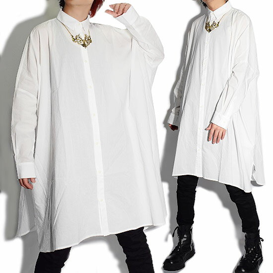 シャツ メンズ ビッグシャツ ロング丈 ロングシャツ 長袖シャツ 変形 オーバーサイズシャツ ワンピースシャツ 無地 ホワイト 白 V系 ビジュアル系 ホスト 大人 2020 春 秋 冬 新作 個性的 モード系 ストリート系 衣装 オリジナル ブランド アレグロ allegro allegro