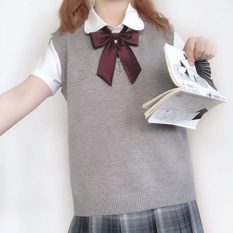 スクールベスト 通学 薄手 夏用 学校 学生 通学 かわいい Vネック ニット 中学 ベスト ニットベスト 学生服 JK 涼しい 刺繍 夏 女子高生 スクール シンプル 人気 小さい 白 ベージュ グレー 大きい 制服