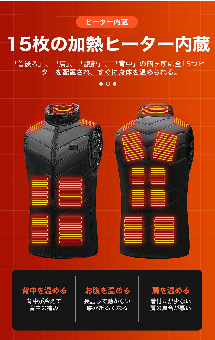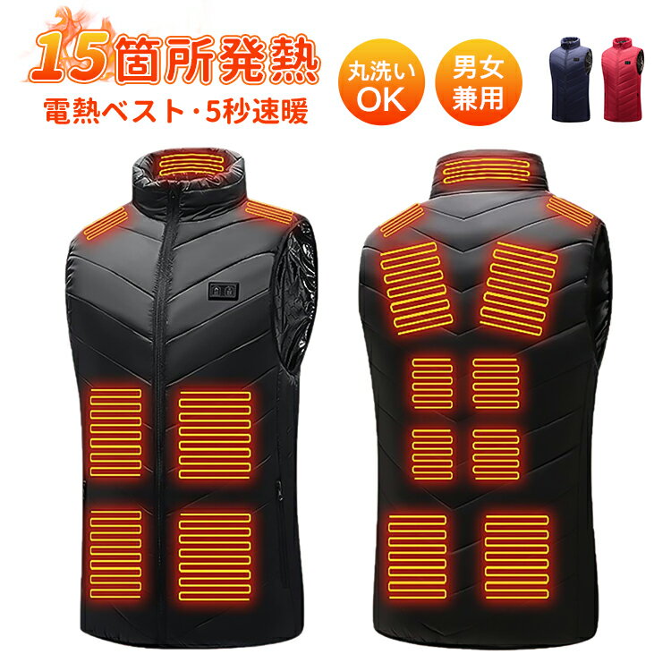 【お買い物マラソン!!最大2000円OFFクーポン】電熱ベスト 15箇所発熱 ヒーター ベスト ヒーターベスト usb給電 洗える 防寒服 男女兼用 クリスマス ギフト 誕生日 バイク 釣り ゴルフ 新生活