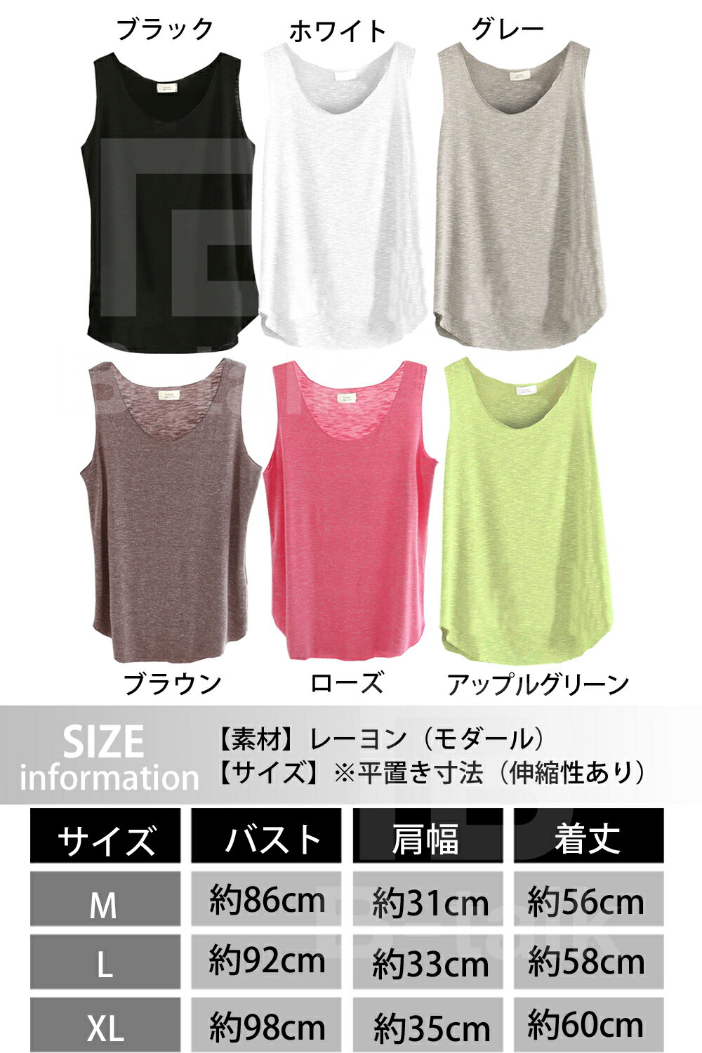 【送料無料】 タンクトップ レディース ゆったり ルーズ デザイン 薄手 速乾 無地 丸首 大きいサイズ 可愛い トップス おしゃれ 女性 女性用 インナー ジュニア ウェア キャミソール 伸縮 ホワイト ブラック アップル グリーン ブラウン M~XL
