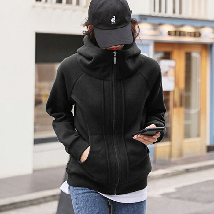裏起毛ボリュームネックジップアップパーカー レディース ゆったり ランチ会 シルエット 女子会 通勤 通学 おしゃれ 着回し スウェット トップス リブ袖 春 アウター 秋 冬 レディース 送料無料 SLENDER スレンダ k166