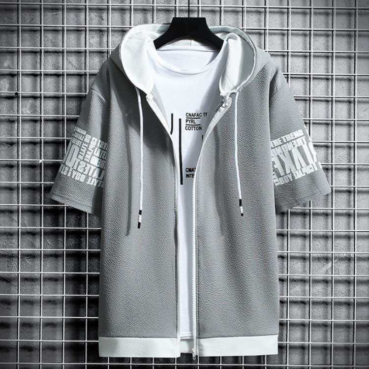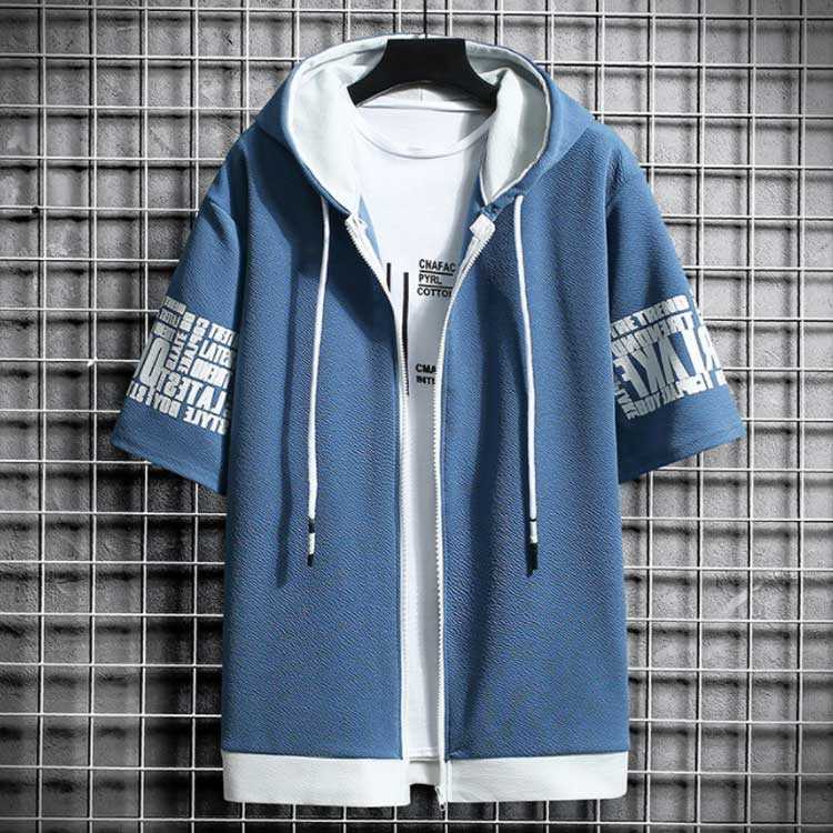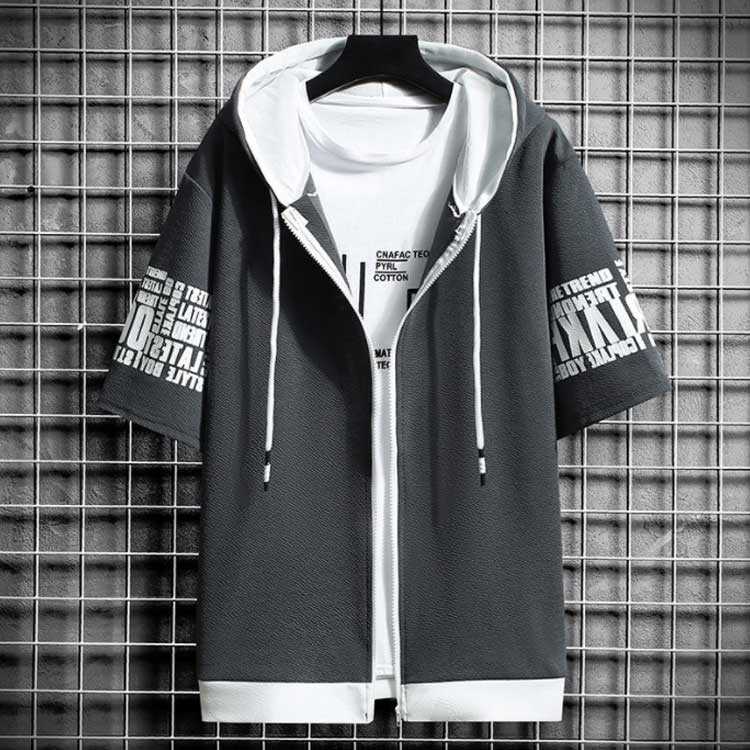 送料無料 パーカー 切り替え 半袖パーカー ジップアップ メンズ パーカ カットソー トップス プリント フード付き 運動着 部屋着 ルームウェア スポーツウェア メンズファッション