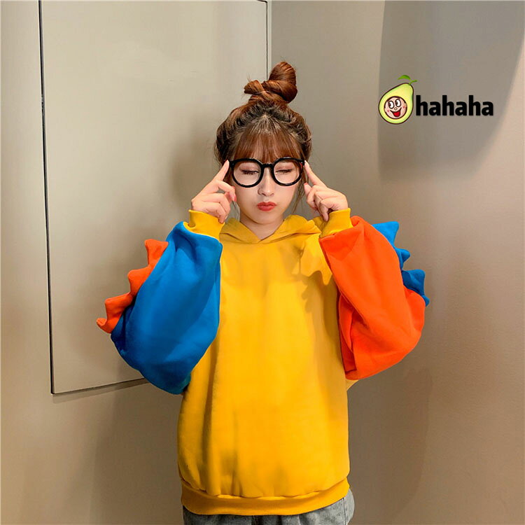 パーカー 韓国 レディース メンズ ペアルック 恐竜 フード付け カップルルック お揃い 大きいサイズ オーバーサイズ パーカー 韓国ファッション 秋 冬 大きめ おしゃれ 切り替え グリーン オレンジ ホワイト カラフル 小学生 ジュニア 大学生