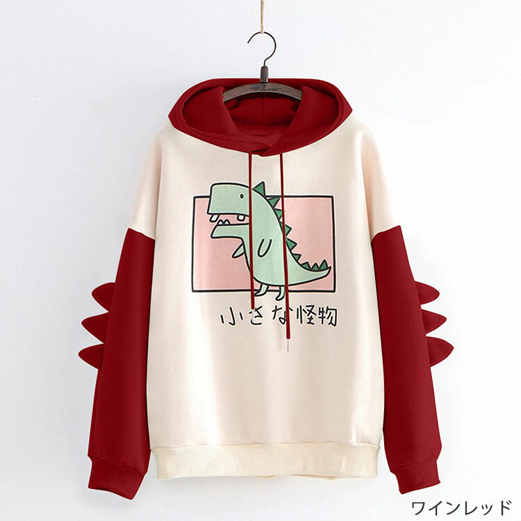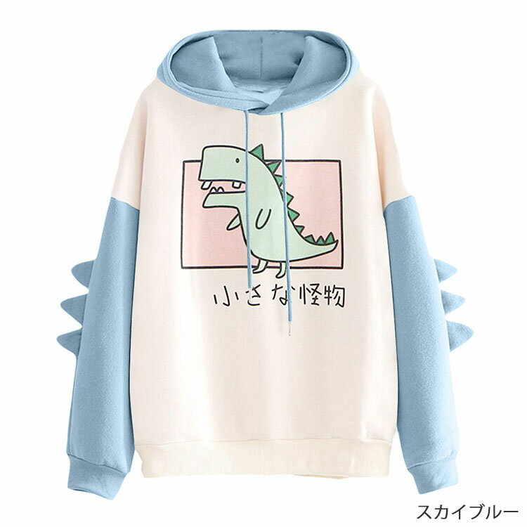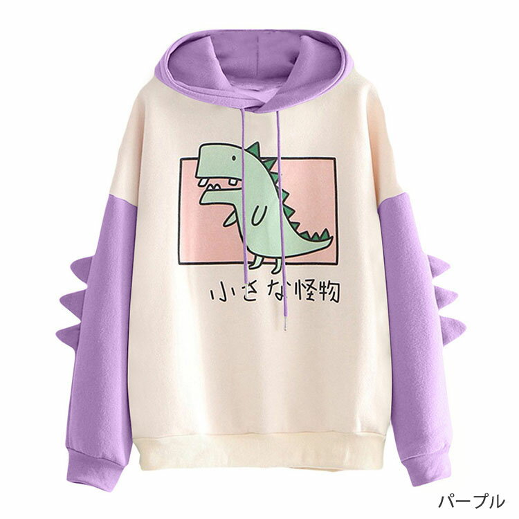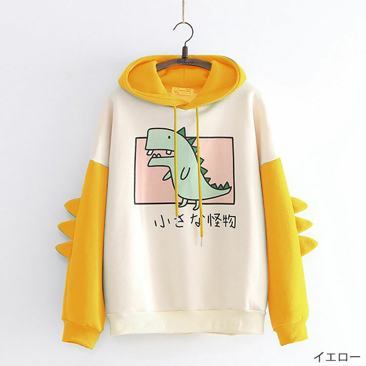 パーカー 韓国 レディース ガールズ 恐竜 フード付け お揃い 大きいサイズ オーバーサイズ パーカー 韓国ファッション 秋 冬 大きめ おしゃれ 切り替え グリーン オレンジ ホワイト カラフル 小学生 ジュニア 大学生 S M L XL 2XL