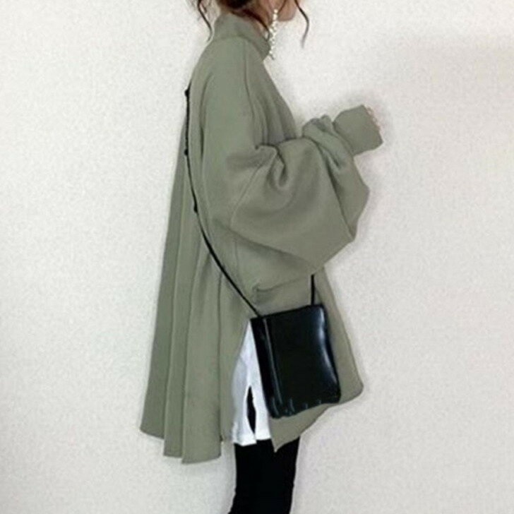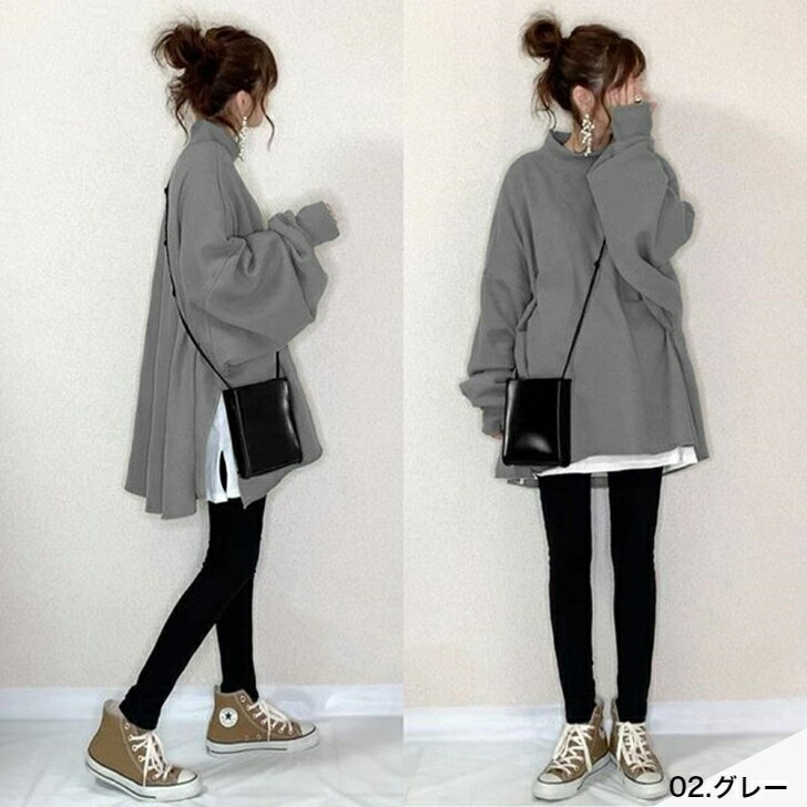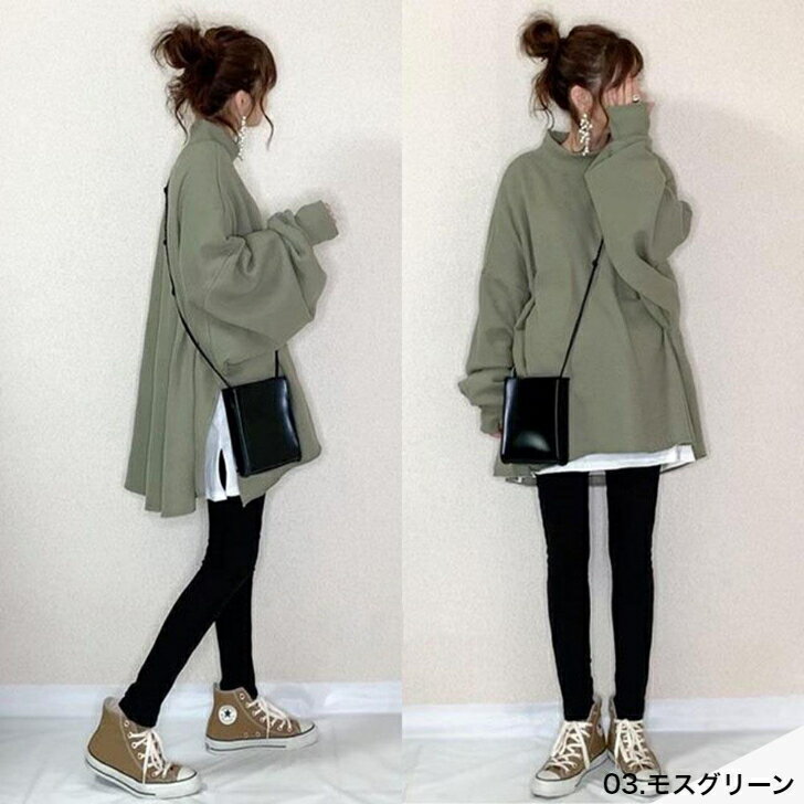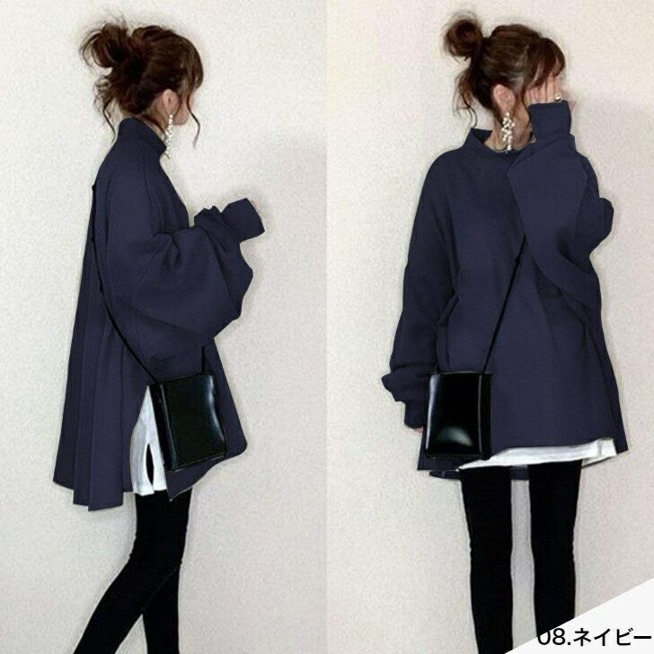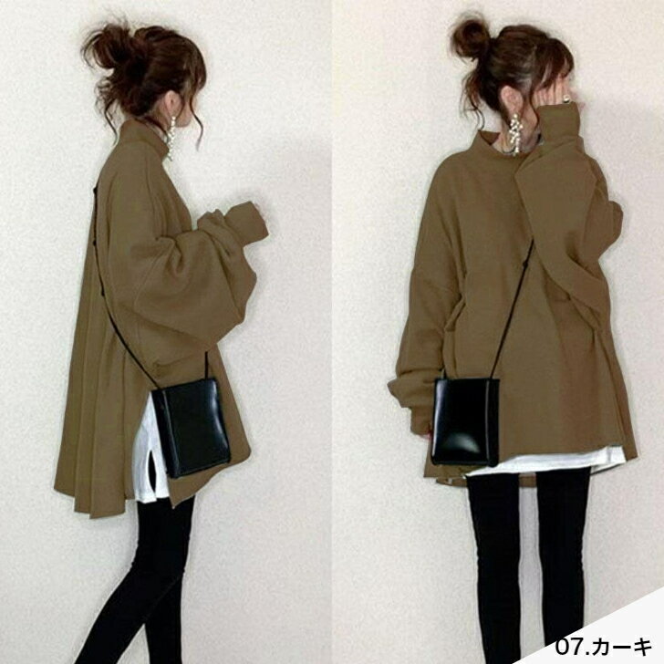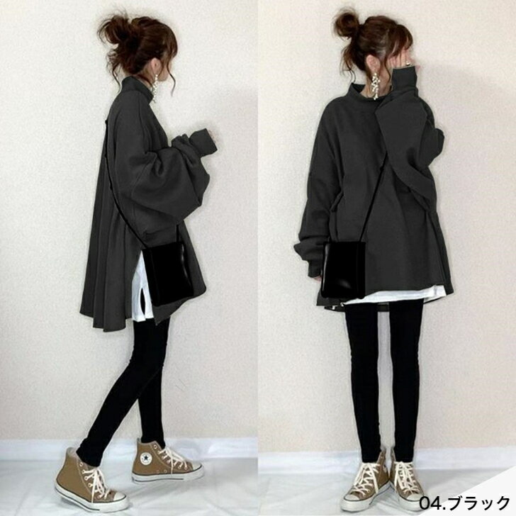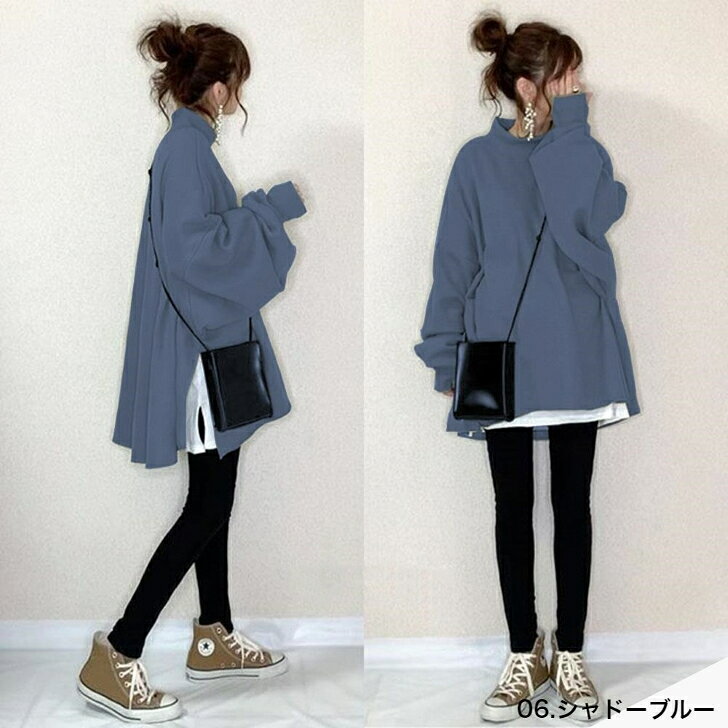 【バックフレアパーカー】 ハイネック 重ね着風 10カラー / パーカー バックフレア パフスリーブ スリット バルーンスリーブ 長め 体型カバー おしゃれ スタイリッシュ カジュアル かわいい 女性 レディース クーポン 割引 対象