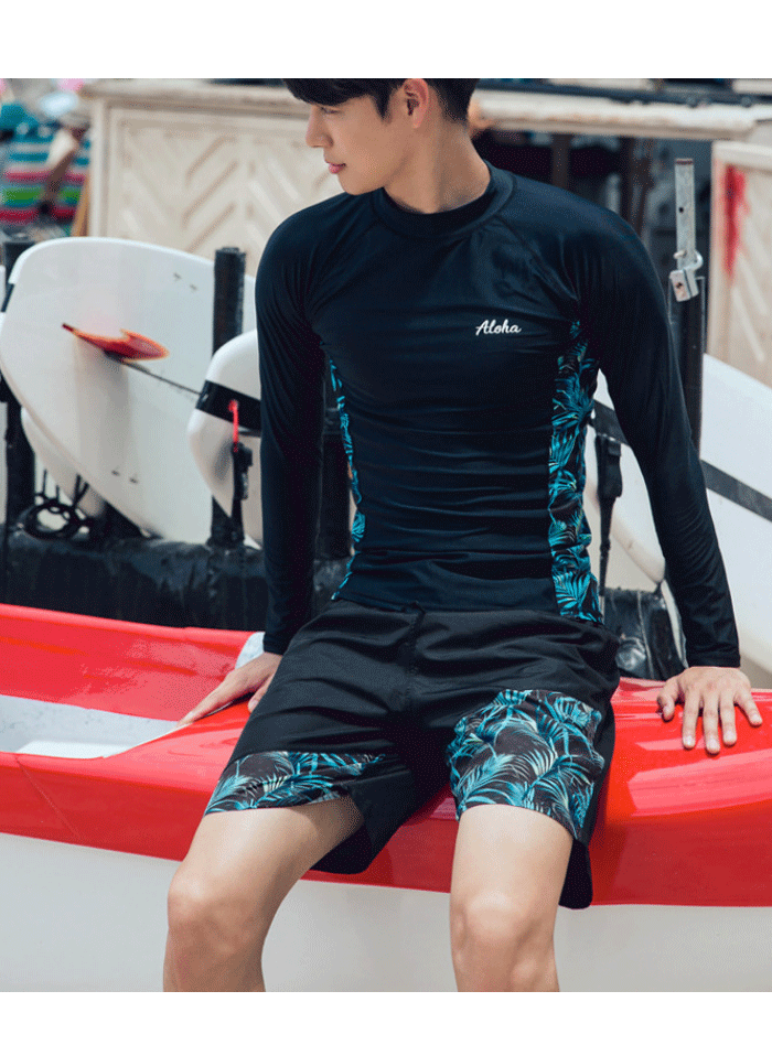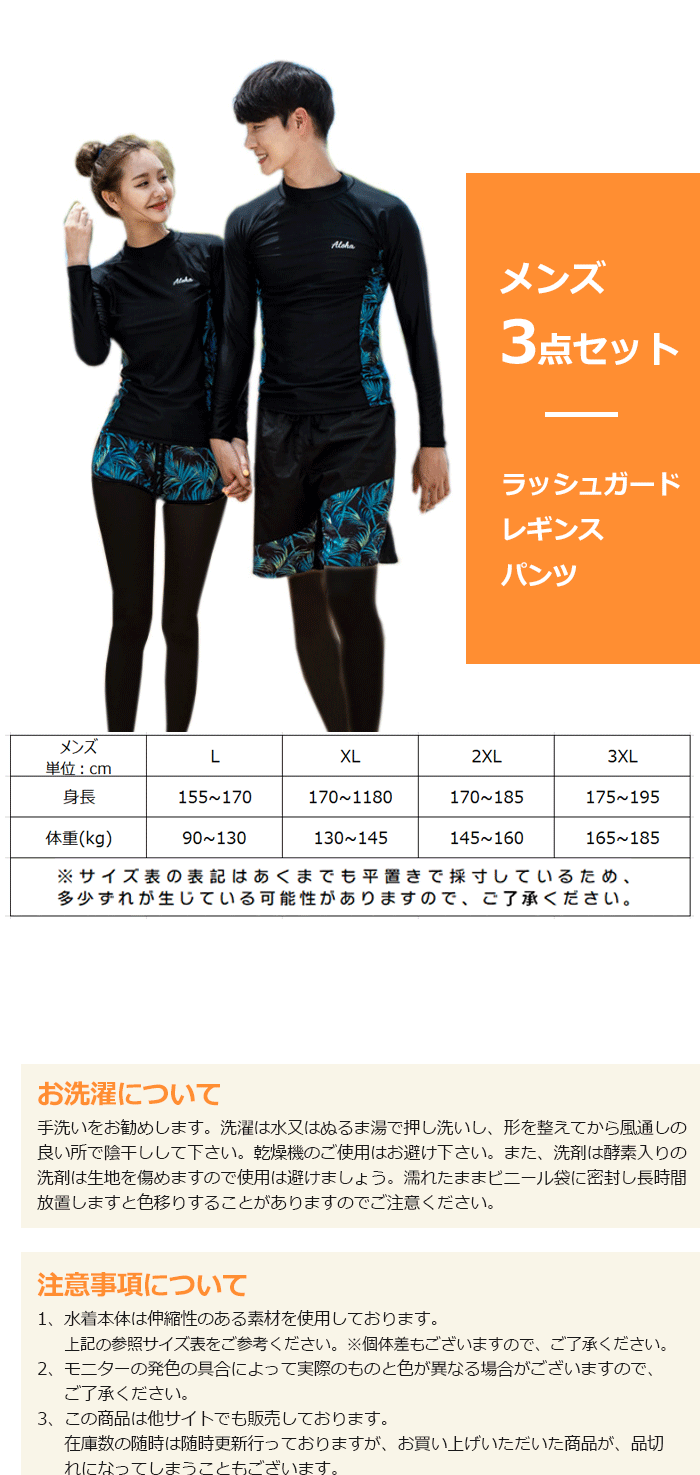 カップルペアルック 水着 体型カバー 大きいサイズ ビキニー カップル お揃い フィットネス ラッシュカード レギンス 長袖 スリム 細身 ブラック 男女兼用 メンズ 3点セット レディース5点セット M-3XL