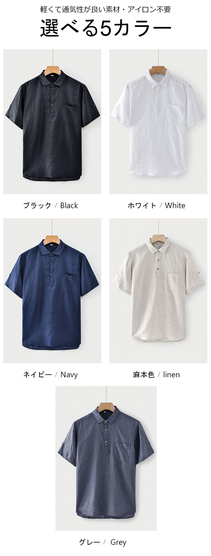 Tシャツ メンズ 半袖 ポロシャツ 無地 poroシャツ 夏用 カジュアル tシャツ ゴルフシャツ ビッグシルエット トップス ビジネス フォーマル 無地 vネック 韓国 ファッション 春服 夏服 インナー 麻素材 黒 白 紺色 灰色 麻本色 S-2XL