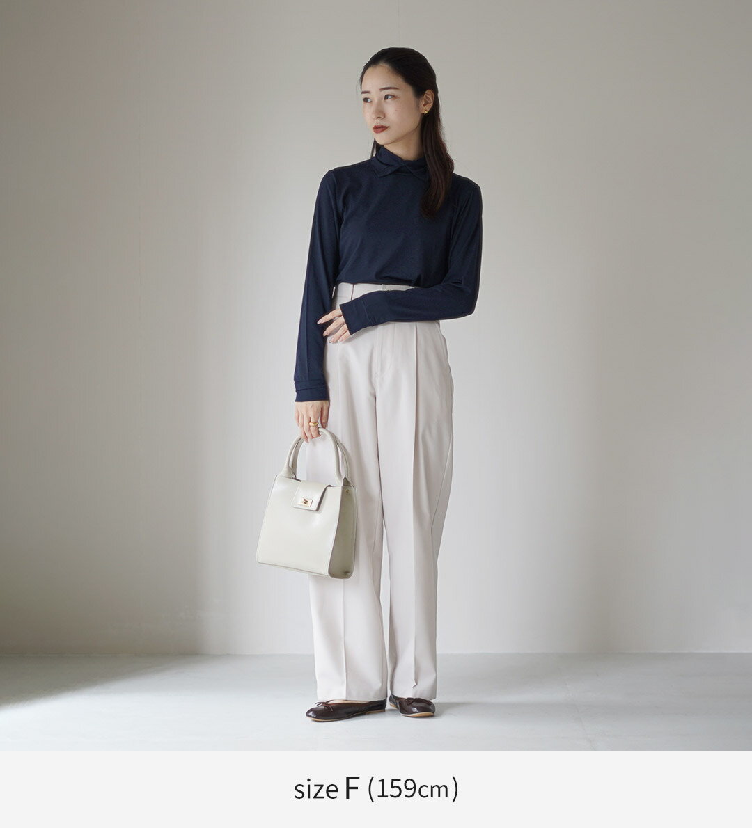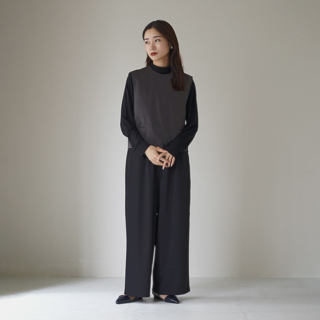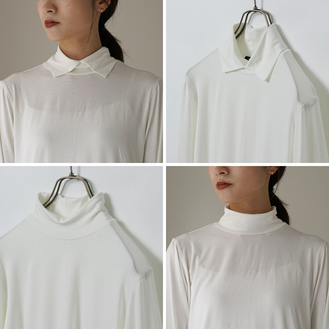 mizuiro ind(ミズイロインド) シャツカラー ハイネック プルオーバー / レディース Tシャツ 長袖 襟付き 無地 日本製 カットソー