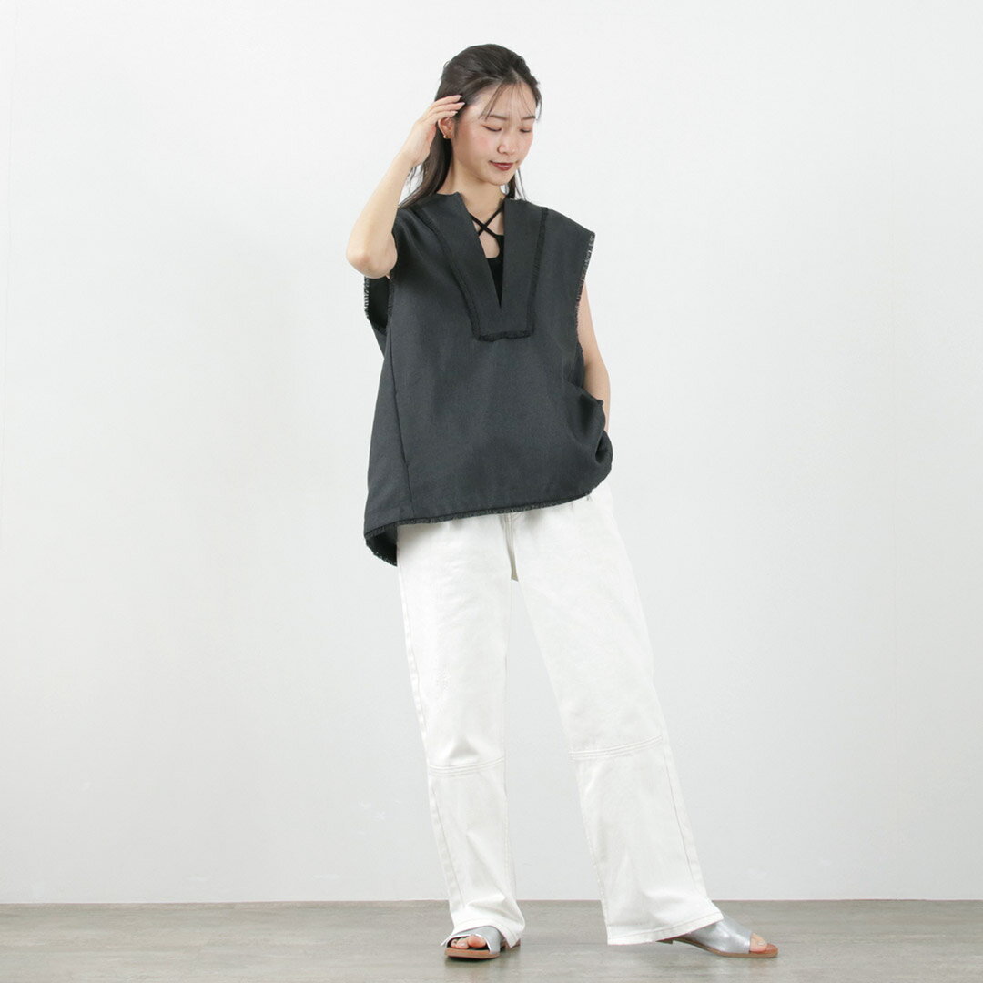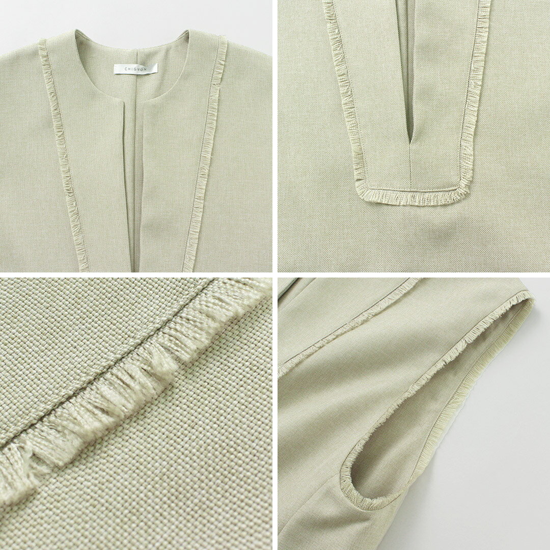 【2点で50%OFFクーポン対象】【20%OFF】CHIGNON(シニヨン) リネンライク フリンジ ベスト / レディース 無地 Vネック 春夏 LINEN LIKE FRINGE VEST【セール】 sa20