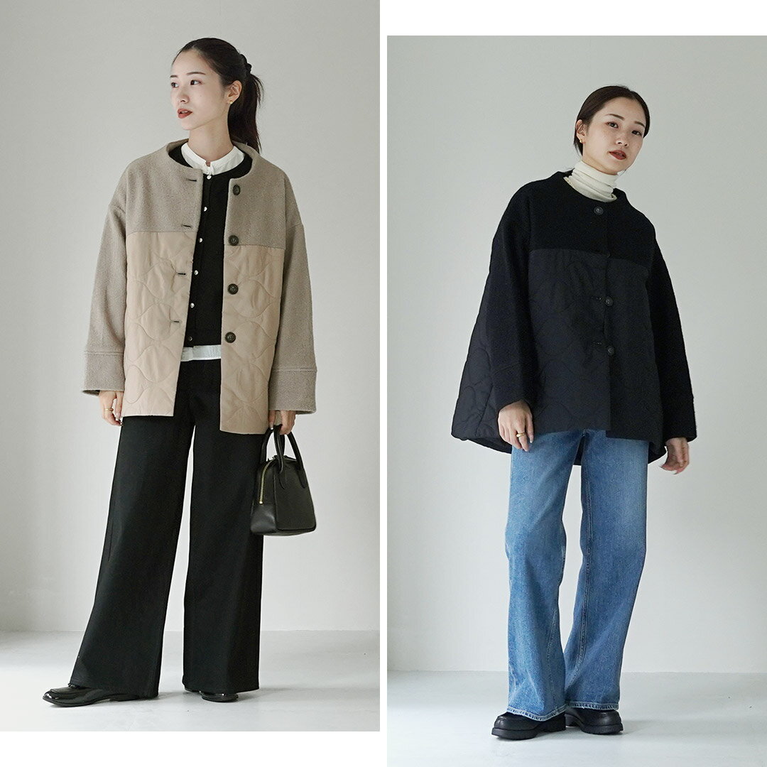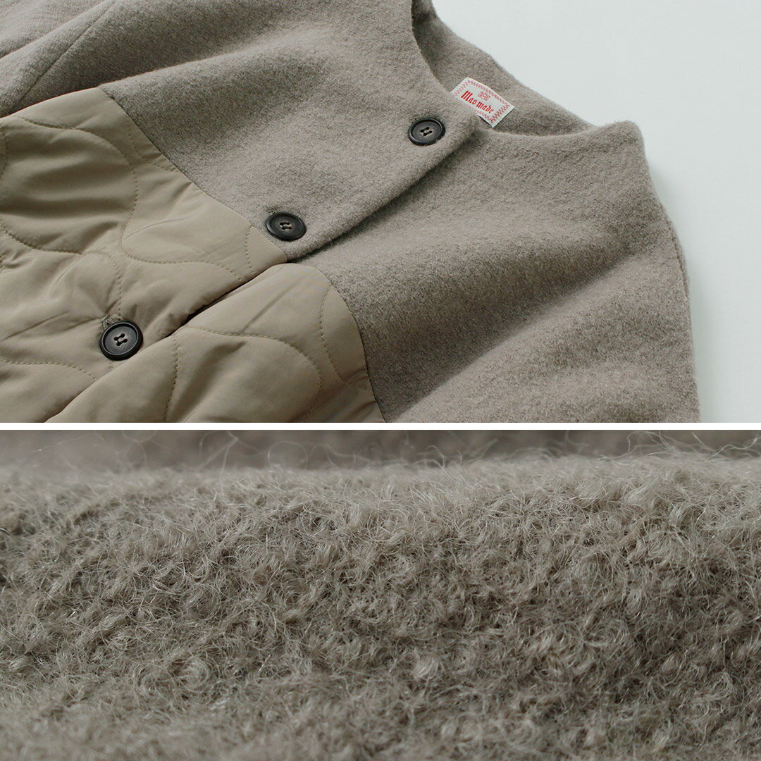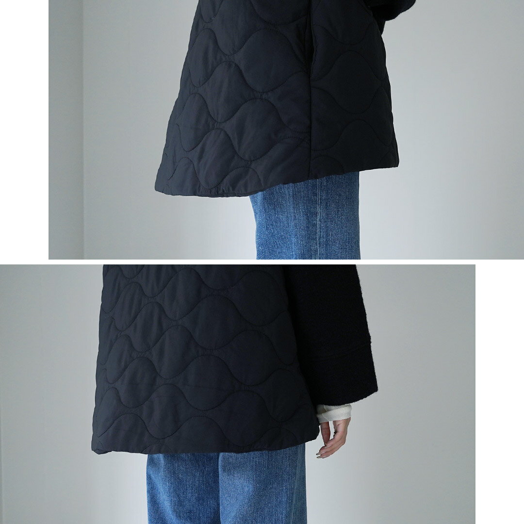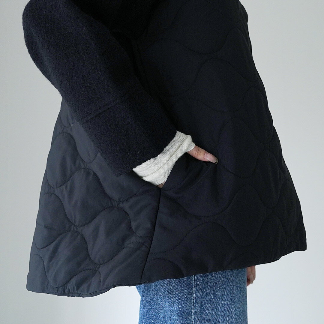 【10%OFFクーポン対象】MAO MADE(マオメイド) ドッキング Aラインコート / レディース アウター ノーカラー 襟なし ウール キルト 無地 ミドル丈