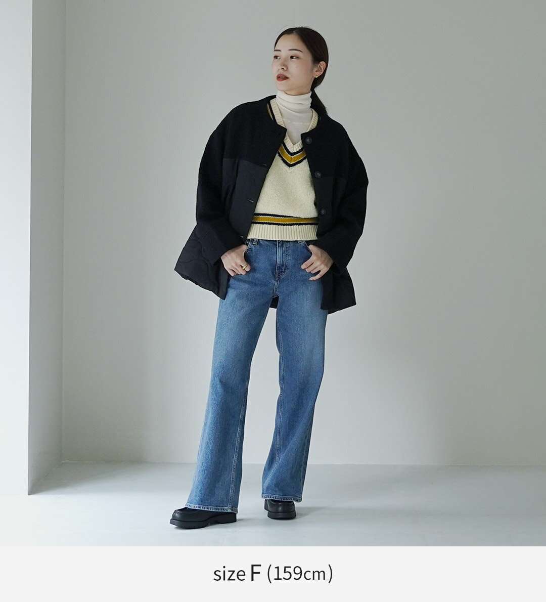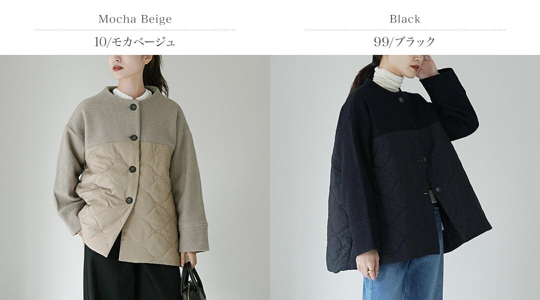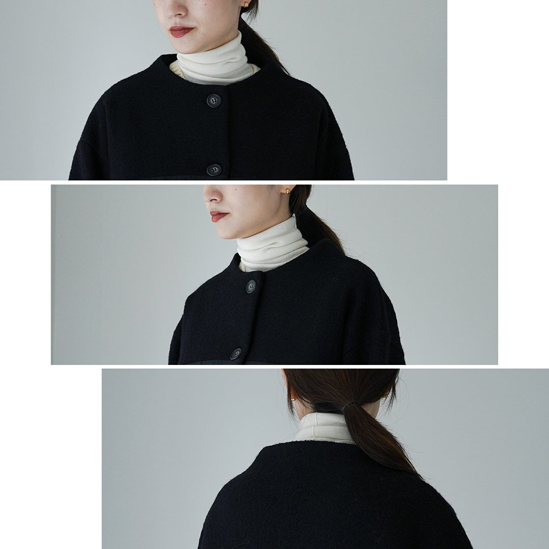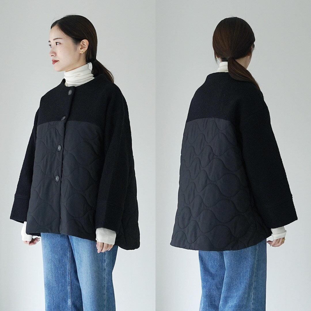 【10%OFFクーポン対象】MAO MADE(マオメイド) ドッキング Aラインコート / レディース アウター ノーカラー 襟なし ウール キルト 無地 ミドル丈