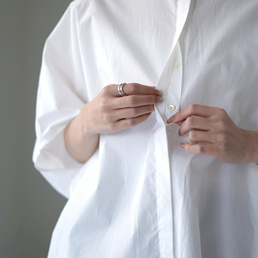 【10%OFFクーポン対象!】mizuiro ind(ミズイロインド) スタンドカラー コクーンシャツ / レディース トップス ブラウス 5分袖 ドルマン 綿100 日本製