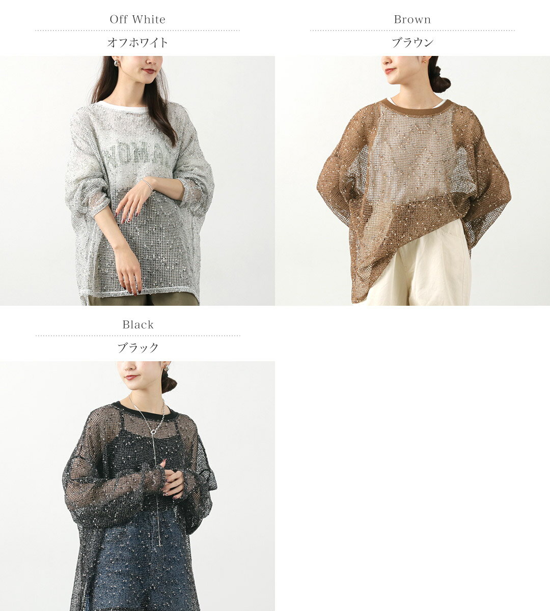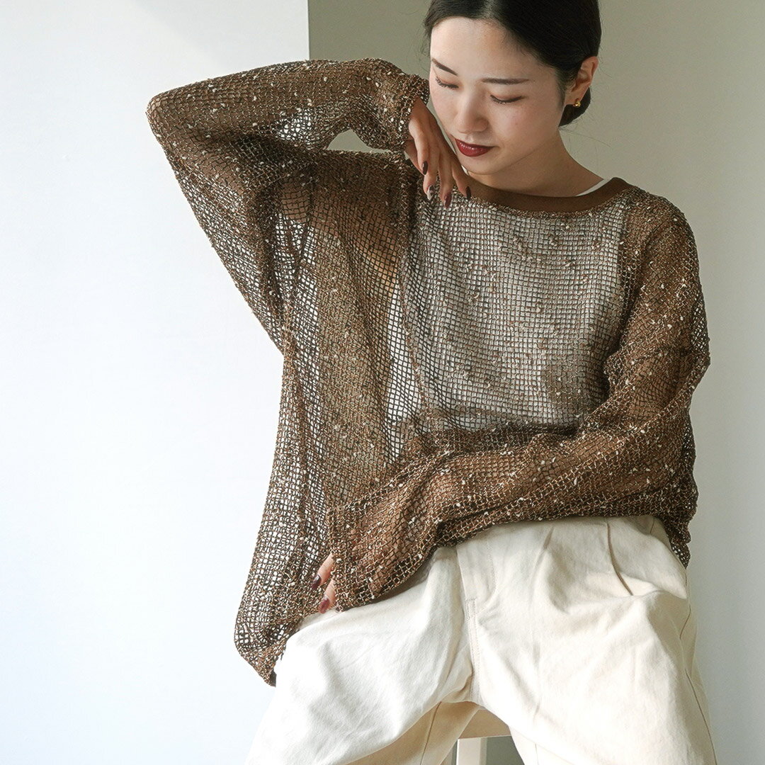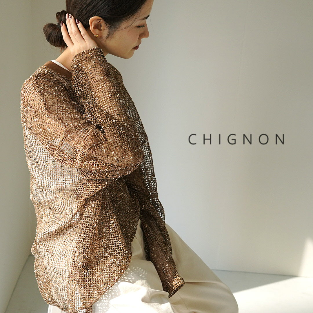 CHIGNON(シニヨン) ネップメッシュプルオーバー / レディース トップス ニット 長袖 シースルー 透かし編み