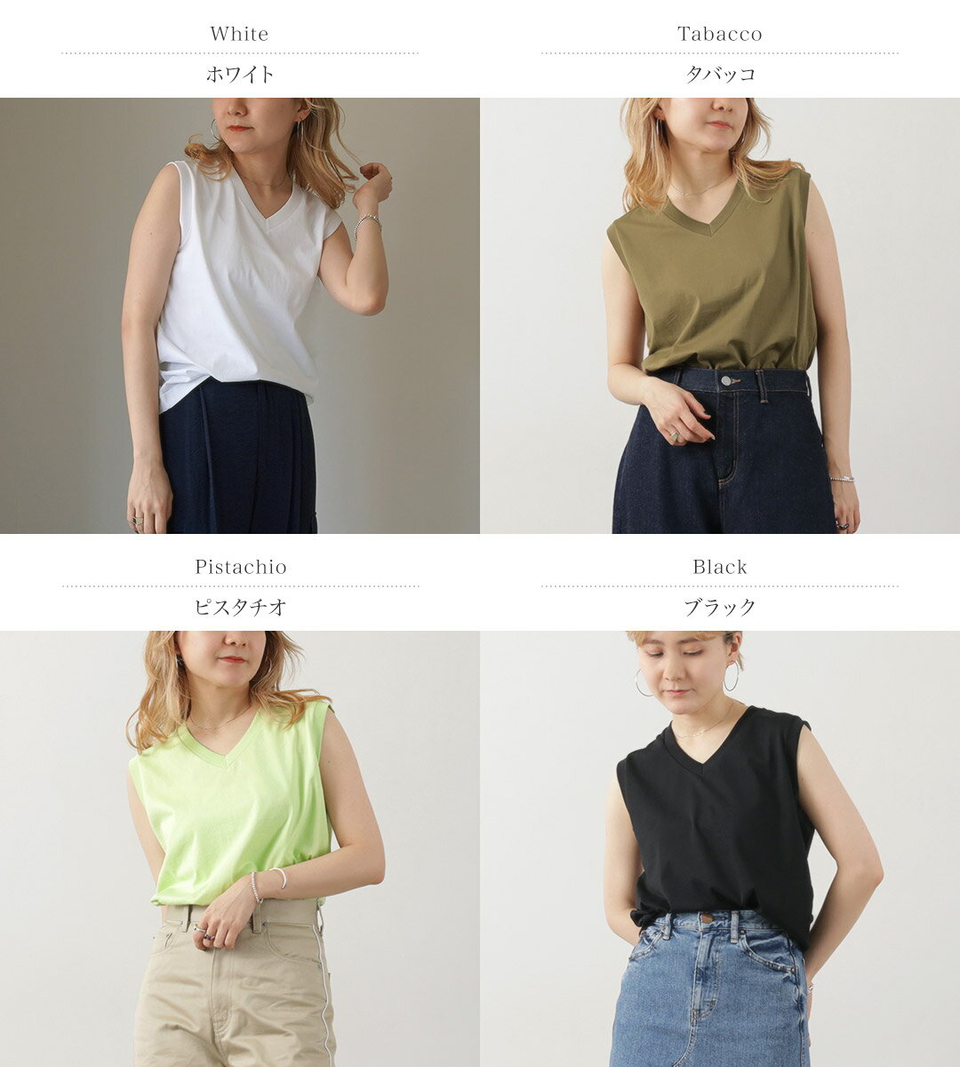 GICIPI(ジチピ) アッチャーイオ Vネック ノースリーブシャツ / レディース トップス インナー タンクトップ ACCIAIO V-Neck N/S TEE