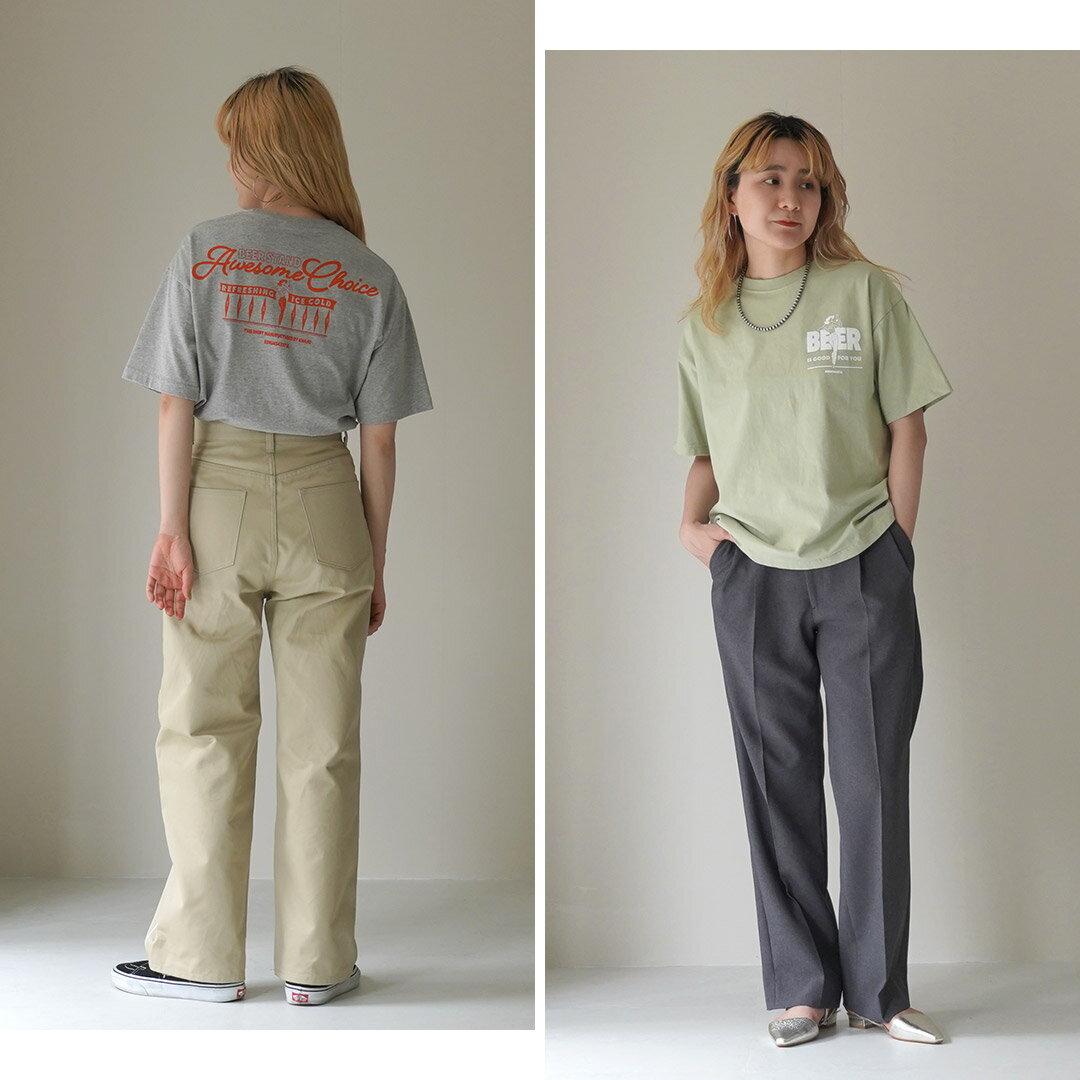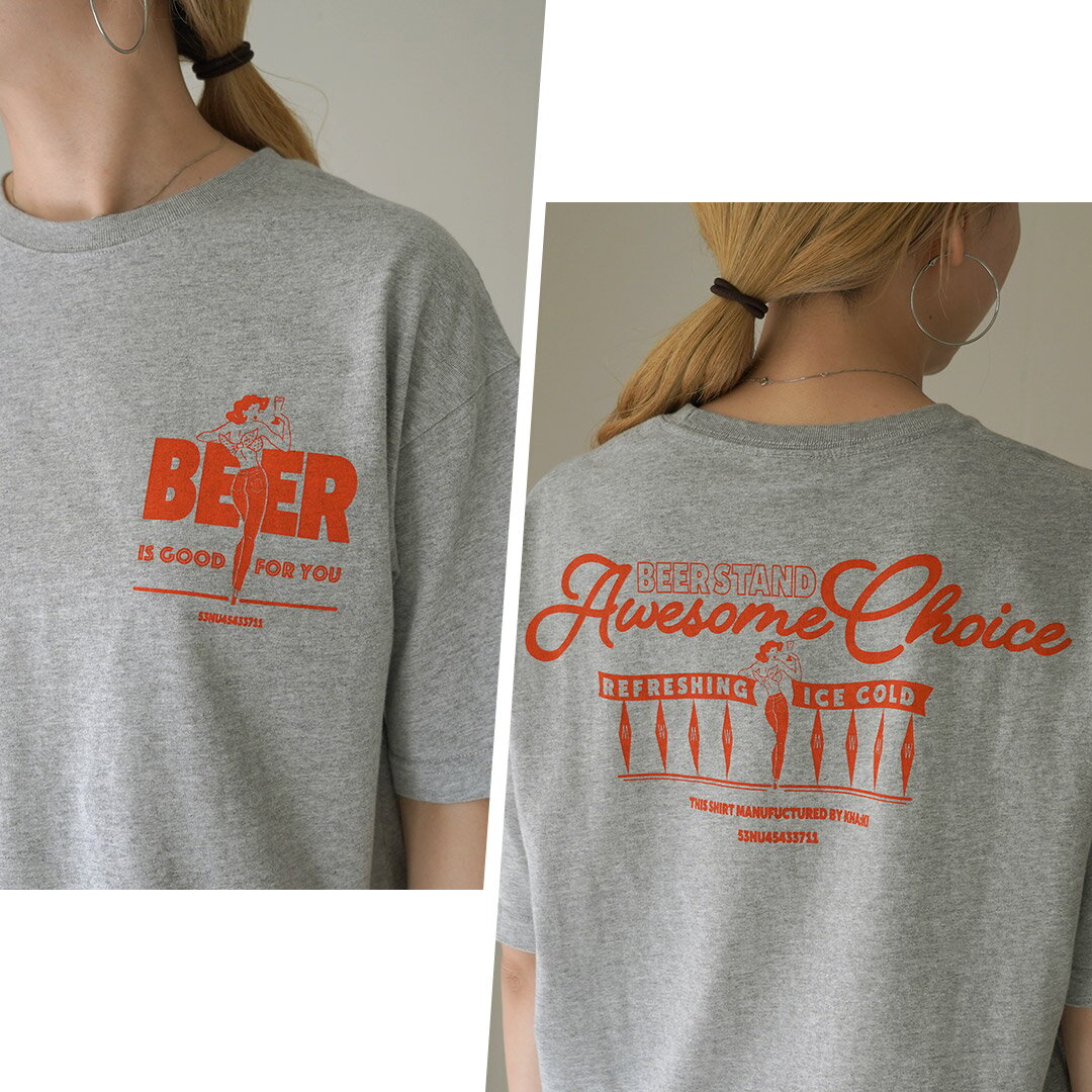 KHA:KI(カーキ) ボックスTEE / レディース トップス Tシャツ 半袖 カットソー 綿100 プリント BOX TEE -BEER STAND-