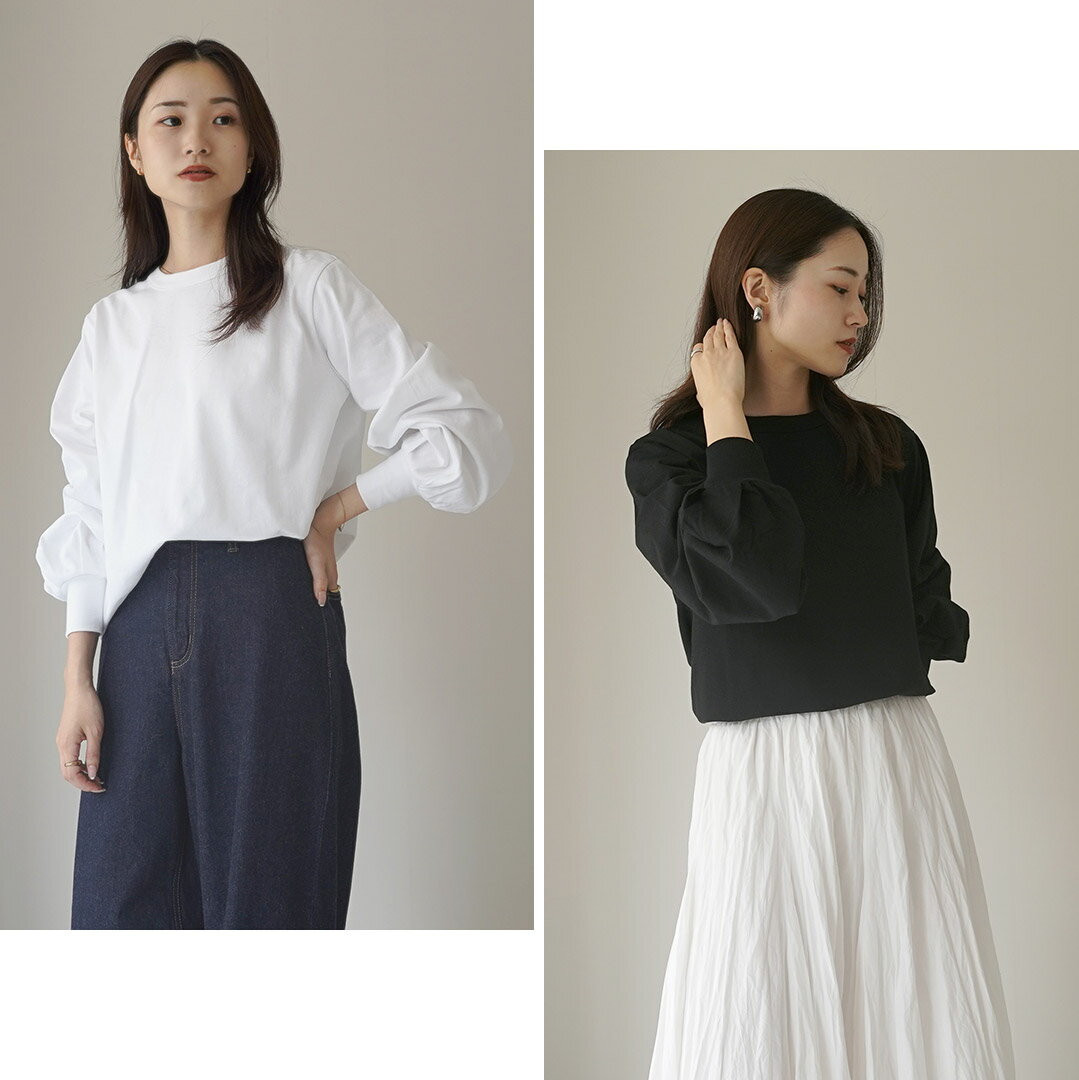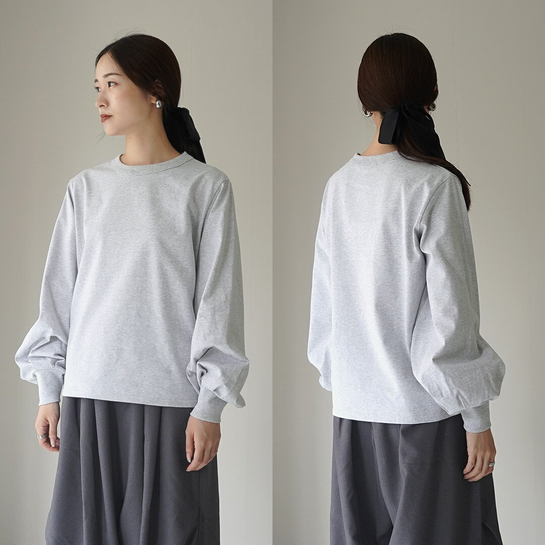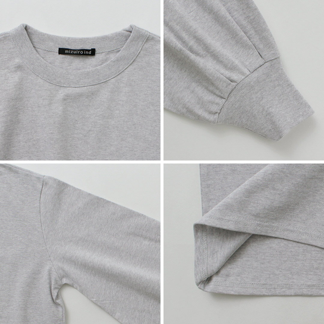 mizuiro ind(ミズイロインド) パフスリーブ ロングTEE / レディース カットソー クルーネック 長袖 綿100 日本製