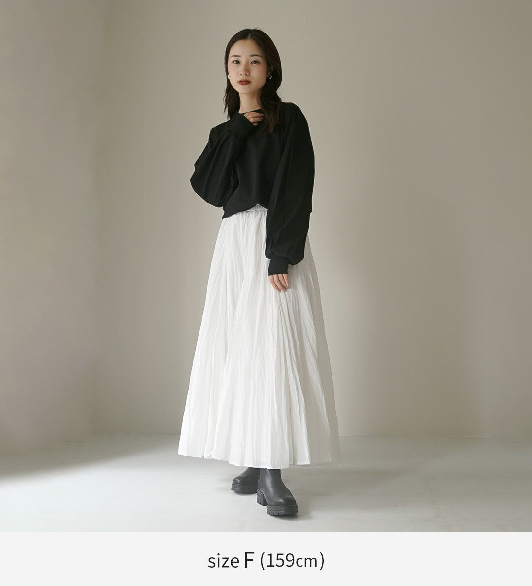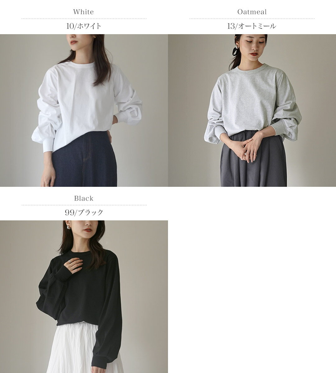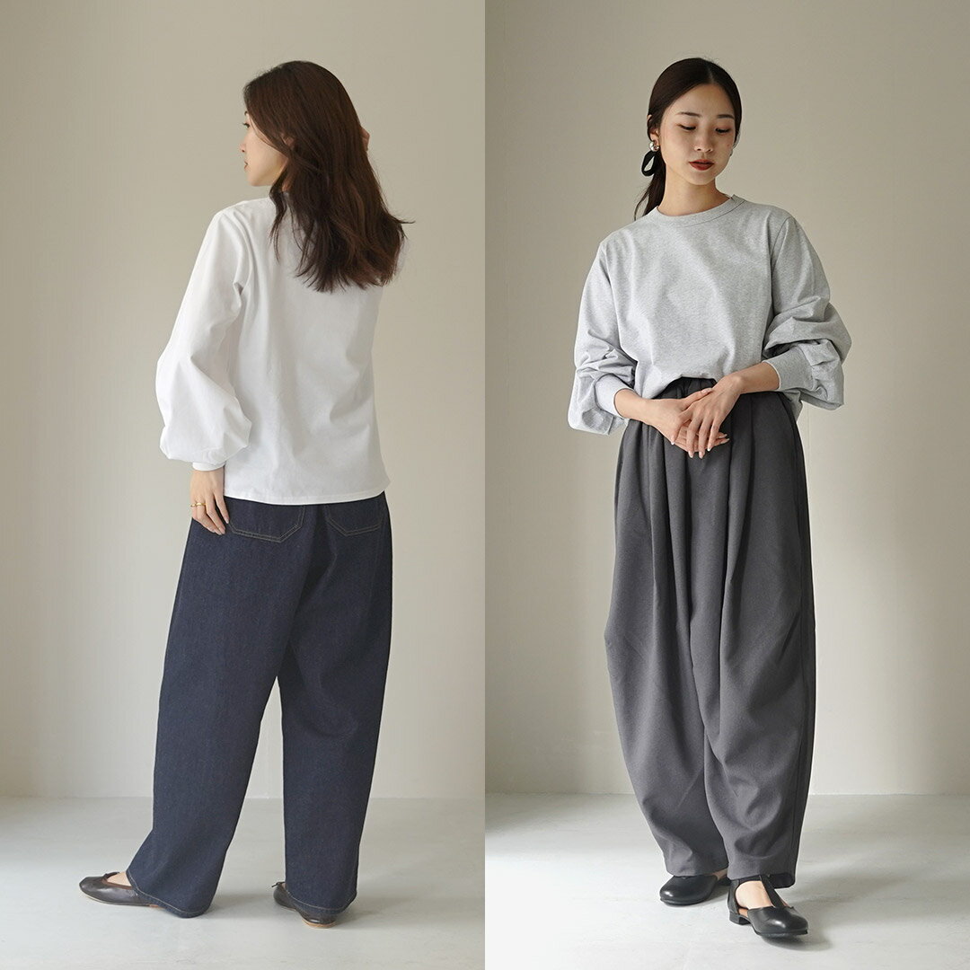 mizuiro ind(ミズイロインド) パフスリーブ ロングTEE / レディース カットソー クルーネック 長袖 綿100 日本製
