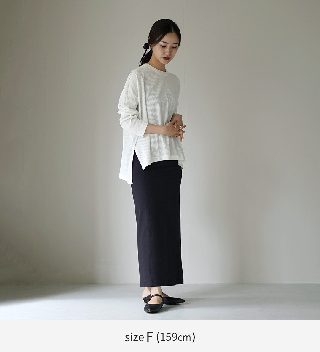 【25%OFFクーポン対象】mizuiro ind(ミズイロインド) クルーネック ワイドTEE / レディース トップス Tシャツ カットソー 長袖 綿 日本製 / cp25 / cpm