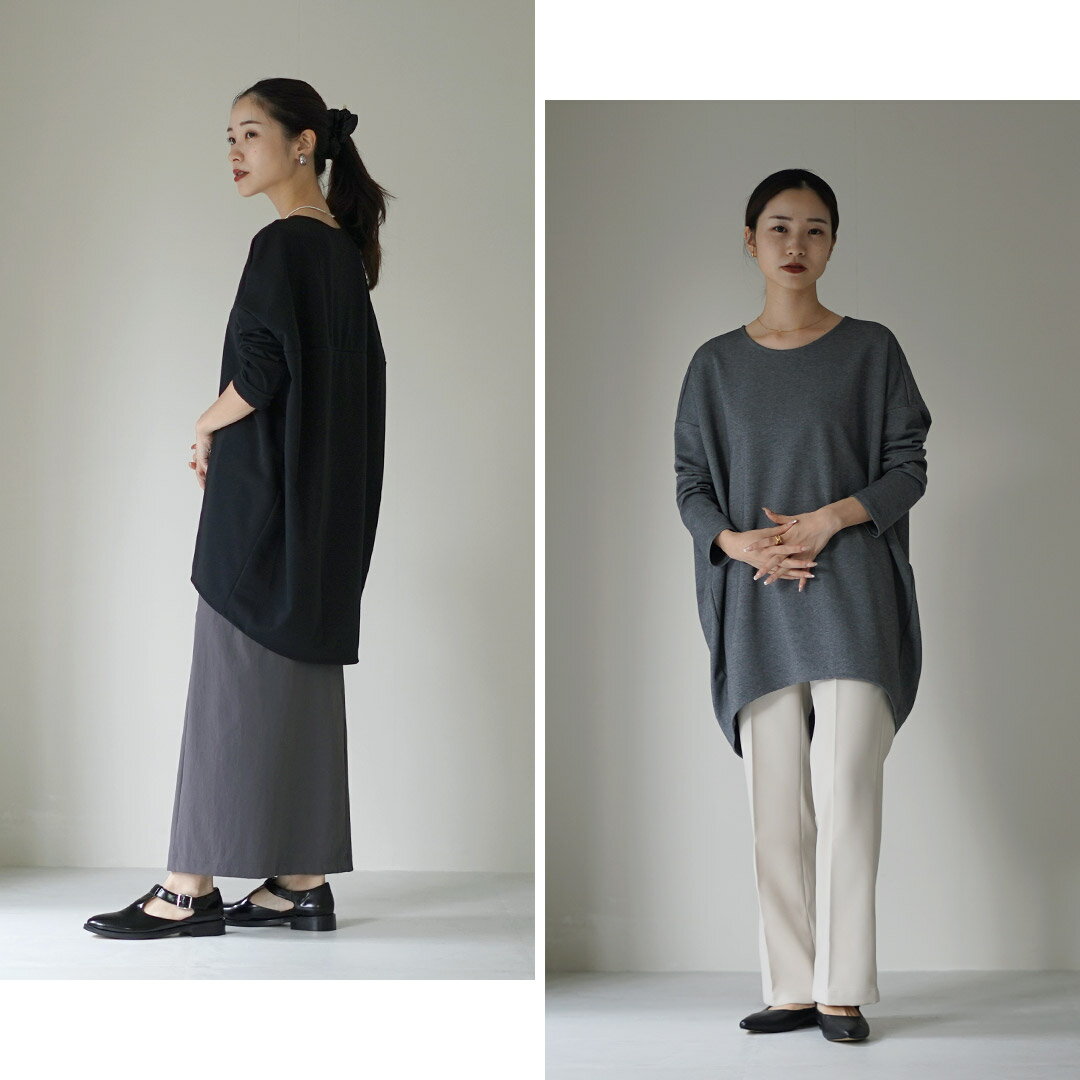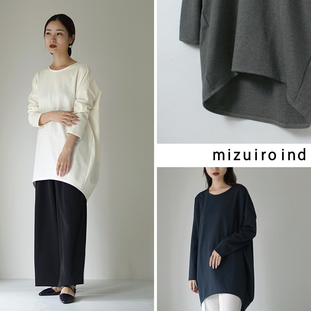 【BLACK FRIDAY SALE 10%OFFクーポン】mizuiro ind(ミズイロインド) クルーネックコクーン プルオーバー / レディース トップス 長袖 カットソー 日本製 無地