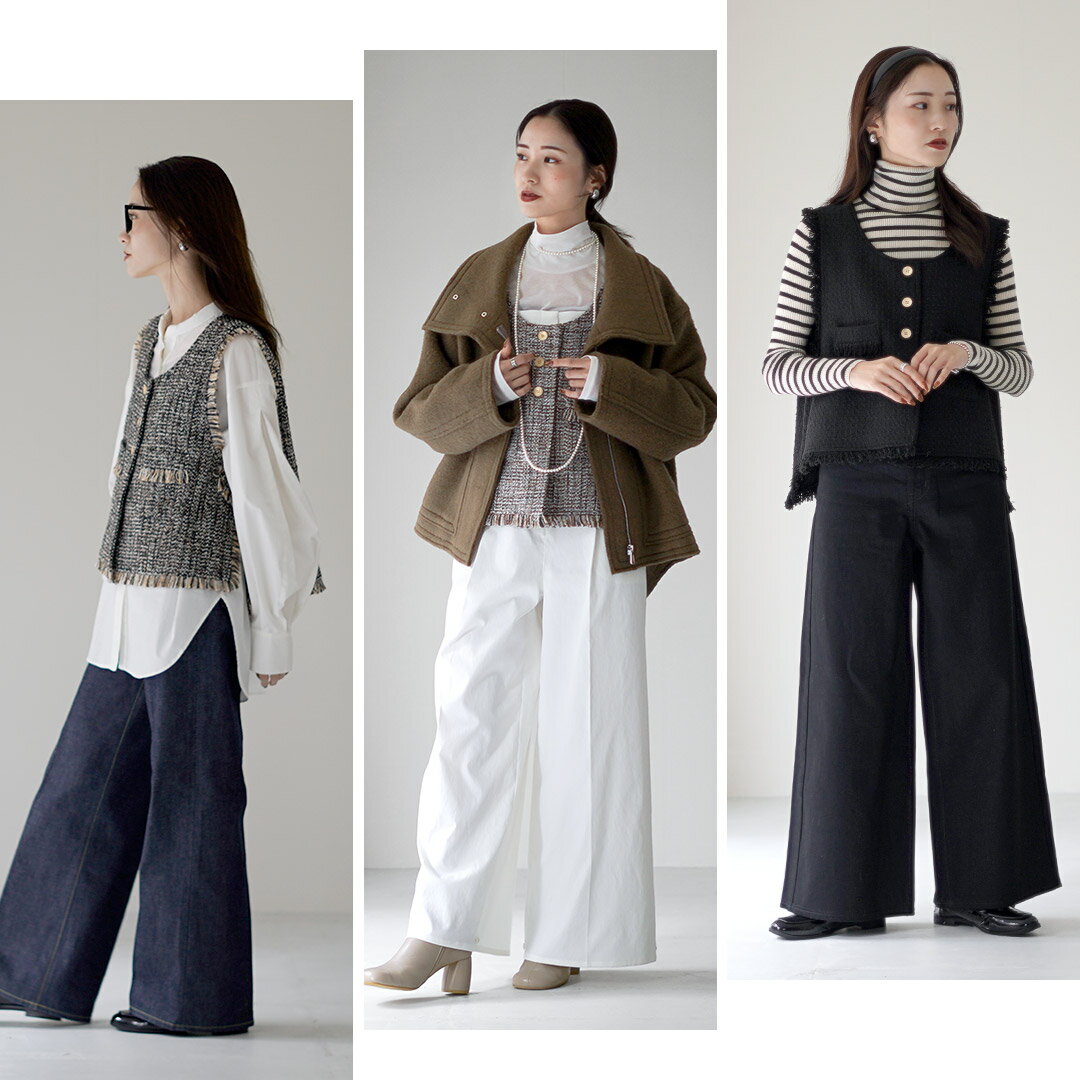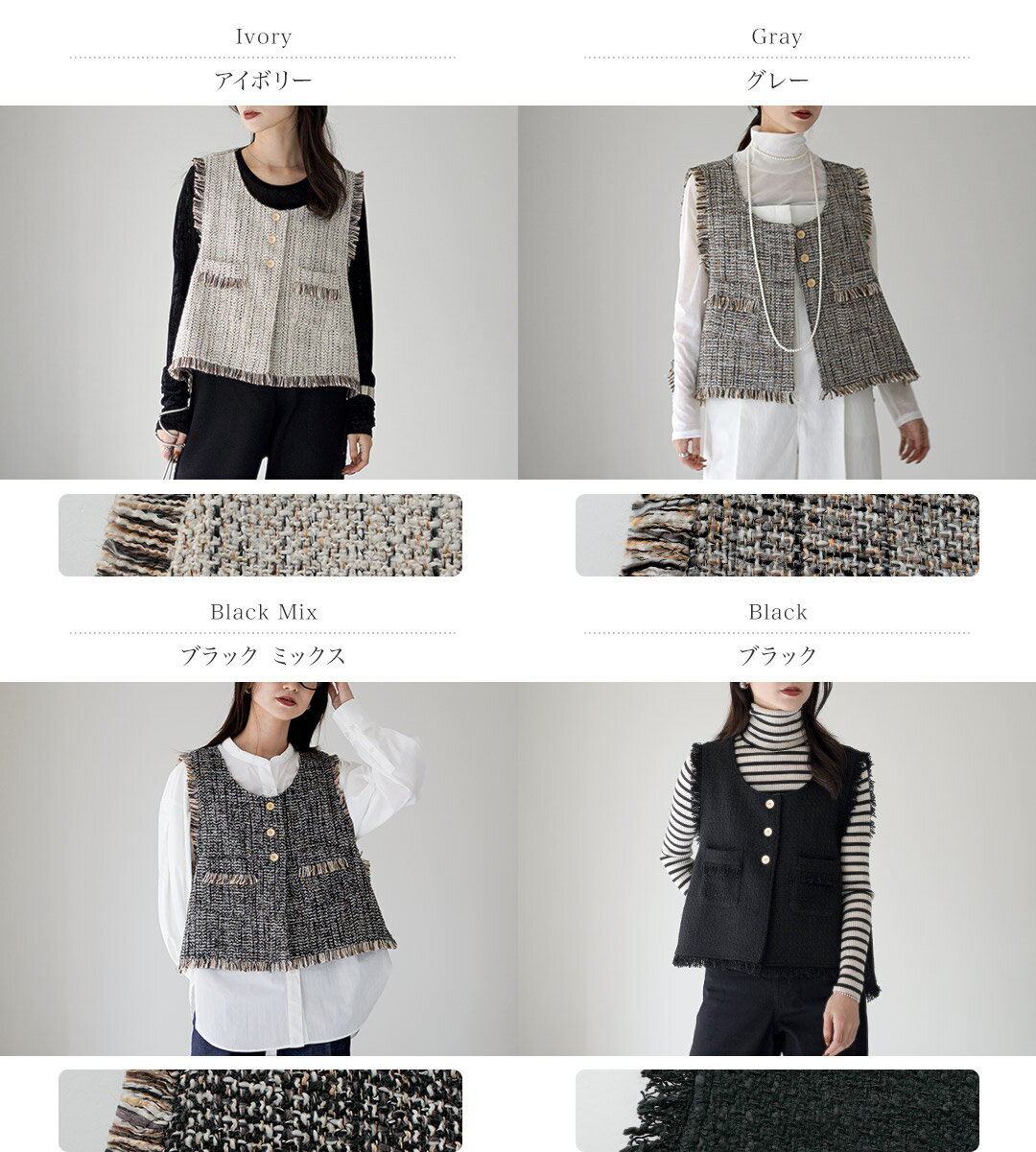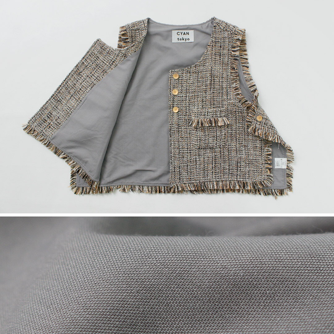 CYAN TOKYO(シアン トーキョー) MIXツイード オープンベスト / 前開き ショート丈 レディース