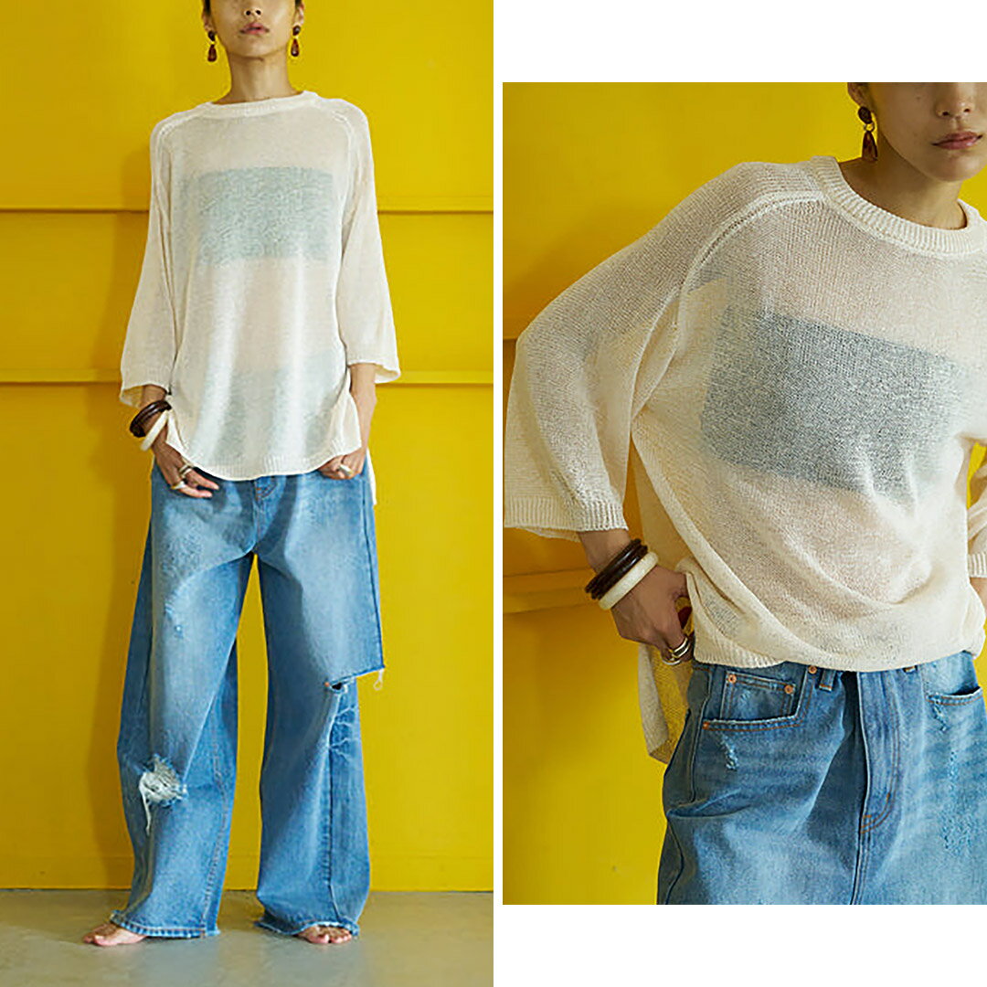 YENN(イェン) シアー リネン ニットTEE / サマーニット 五分袖 レディース SHEER LINEN KNIT TEE