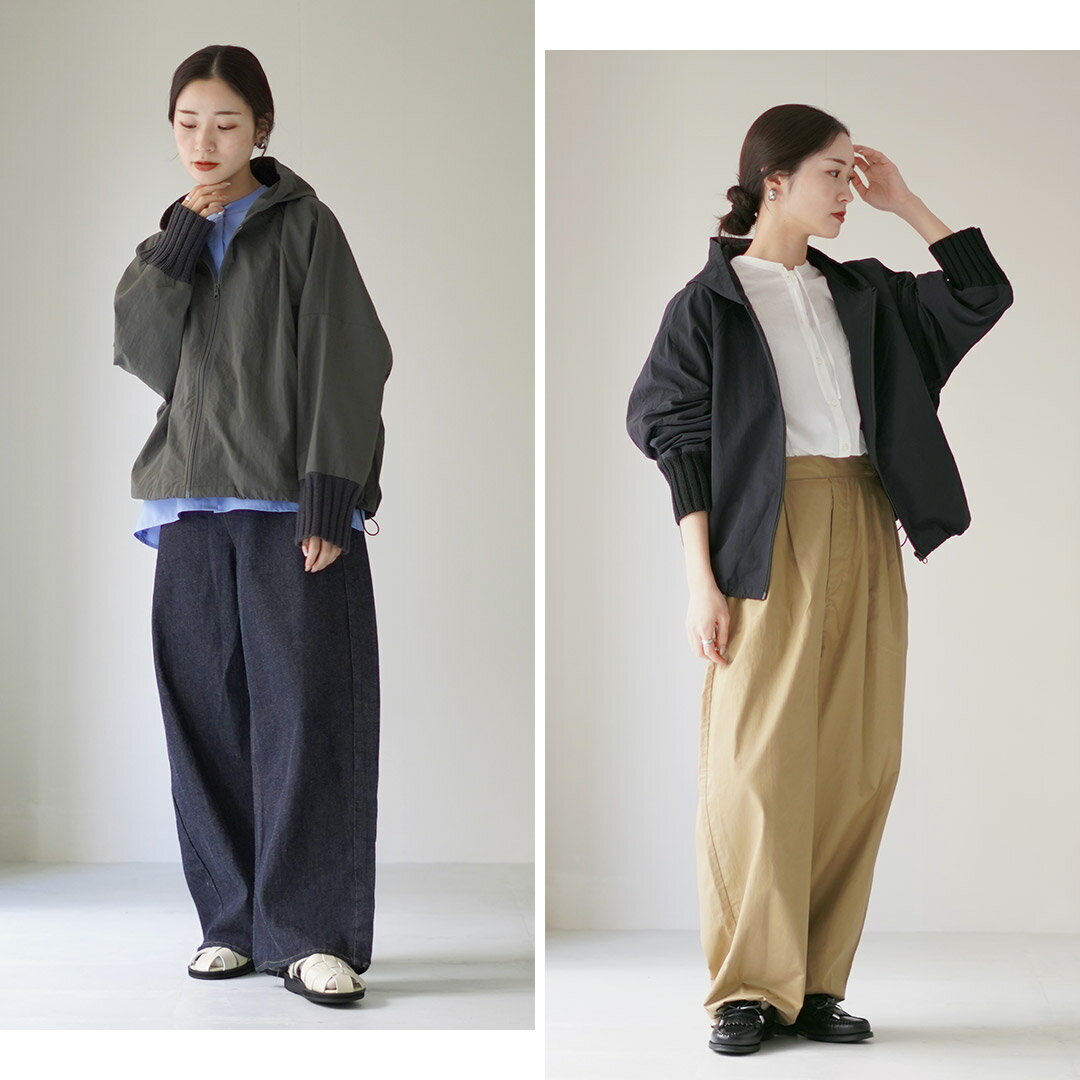 MAO MADE(マオメイド) 別注 ヴィンテージウェザー フードジャケット / ブルゾン ライトアウター レディース ジャンパー 撥水 春秋 ゆったり