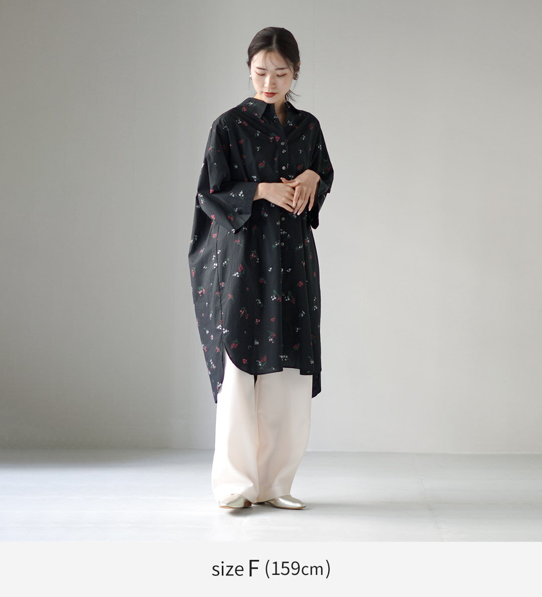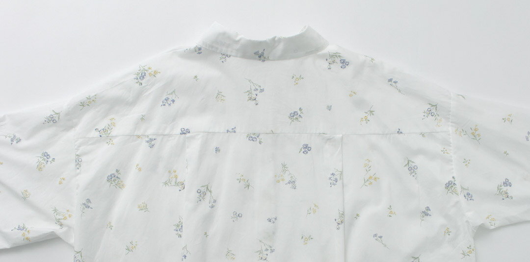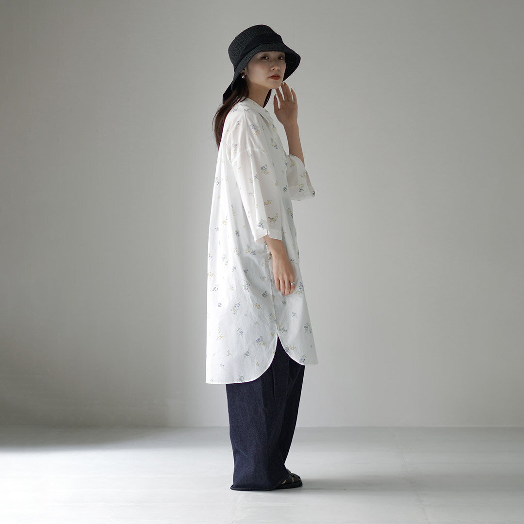 mizuiro ind(ミズイロインド) スモール フラワープリント シャツワンピース / 7分袖 花柄 綿 コットン レディース 日本製