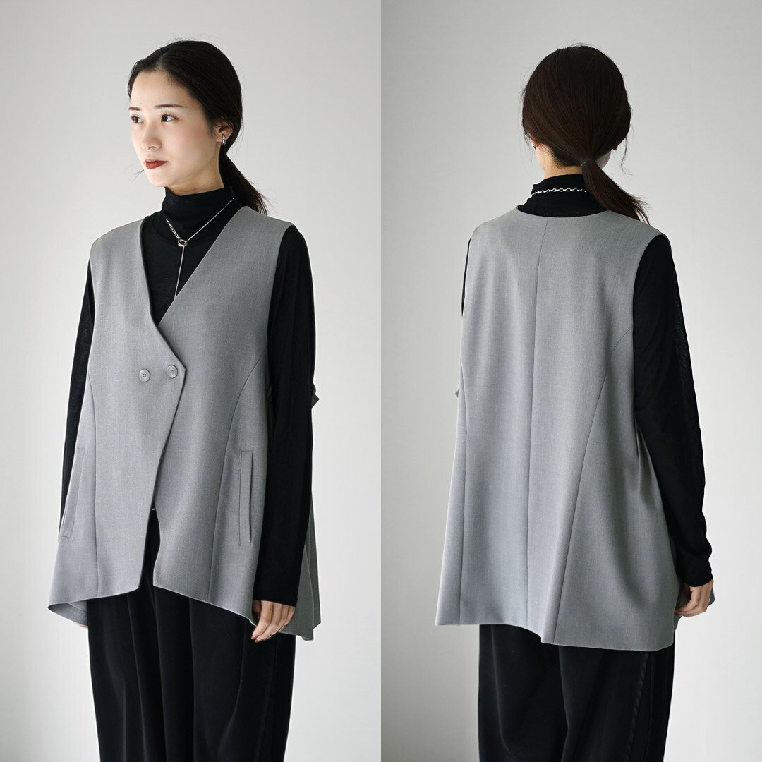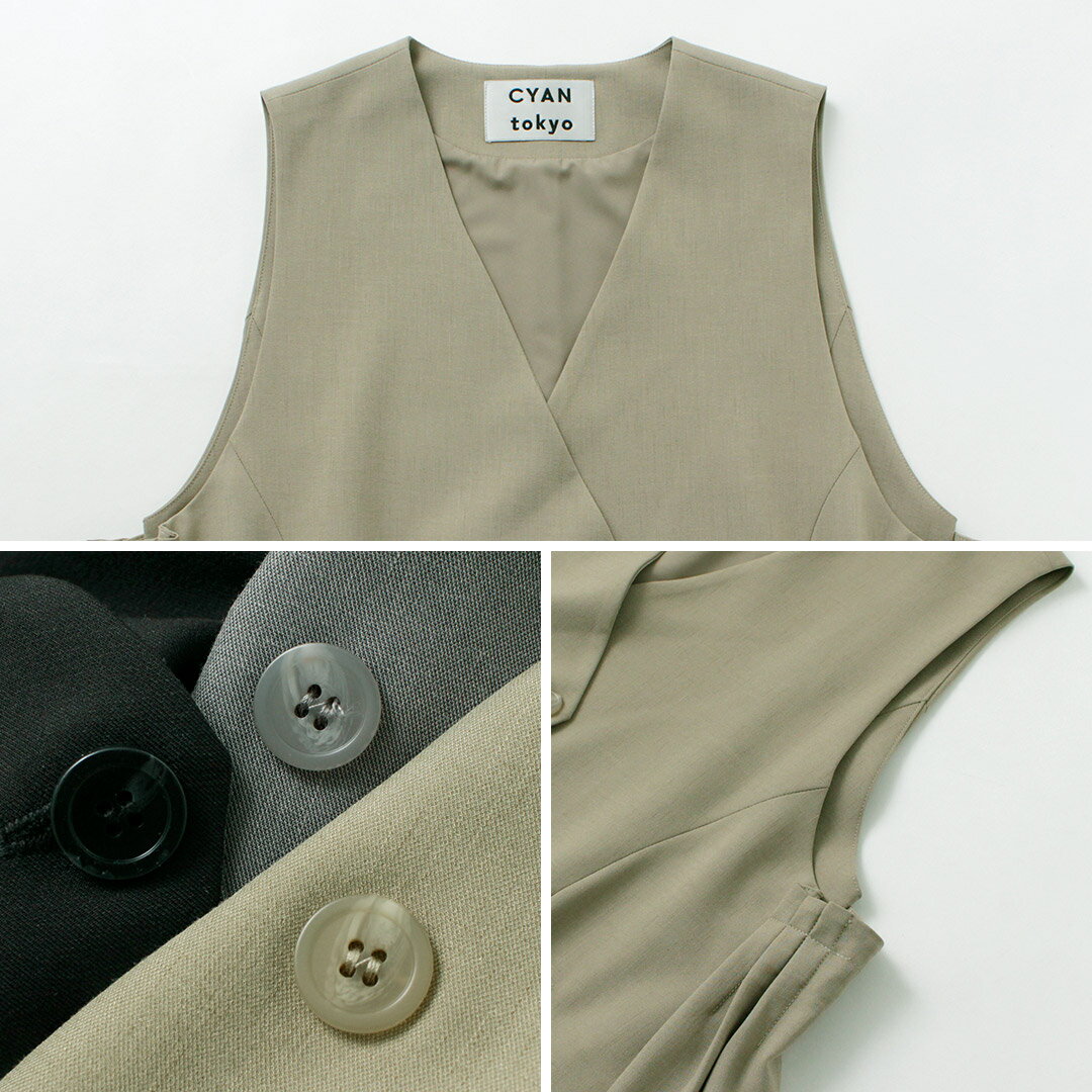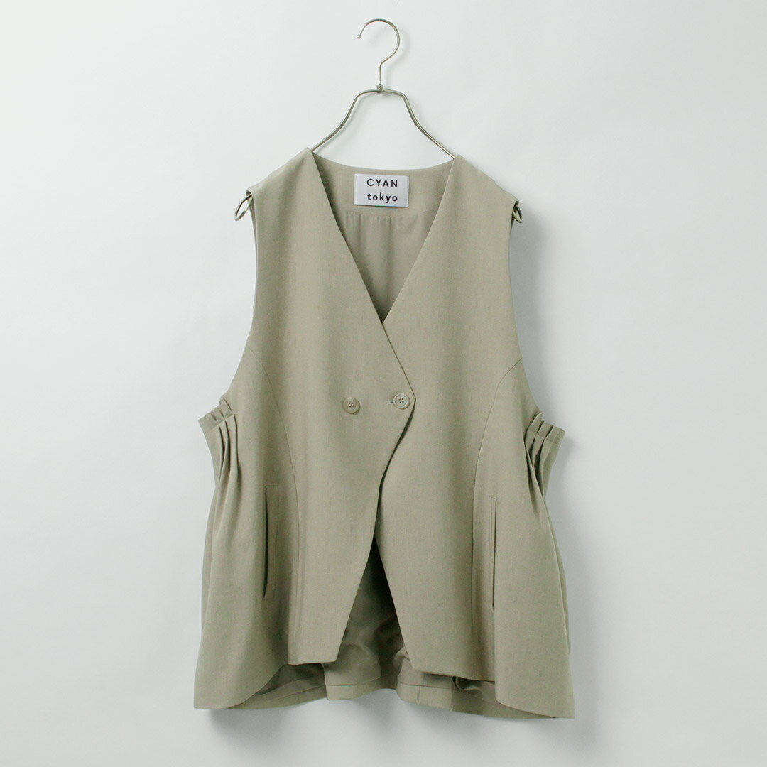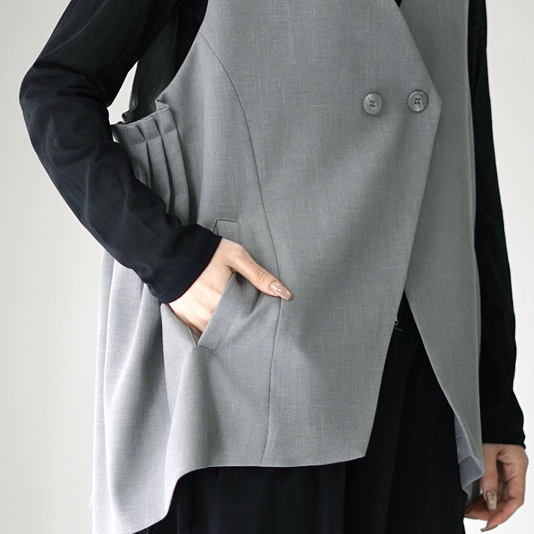 【10%OFFクーポン対象】CYAN TOKYO(シアン トーキョー) リネン アームプリーツ ジレ / レディース トップス ベスト 前開き Vネック オフィスカジュアル オケージョン
