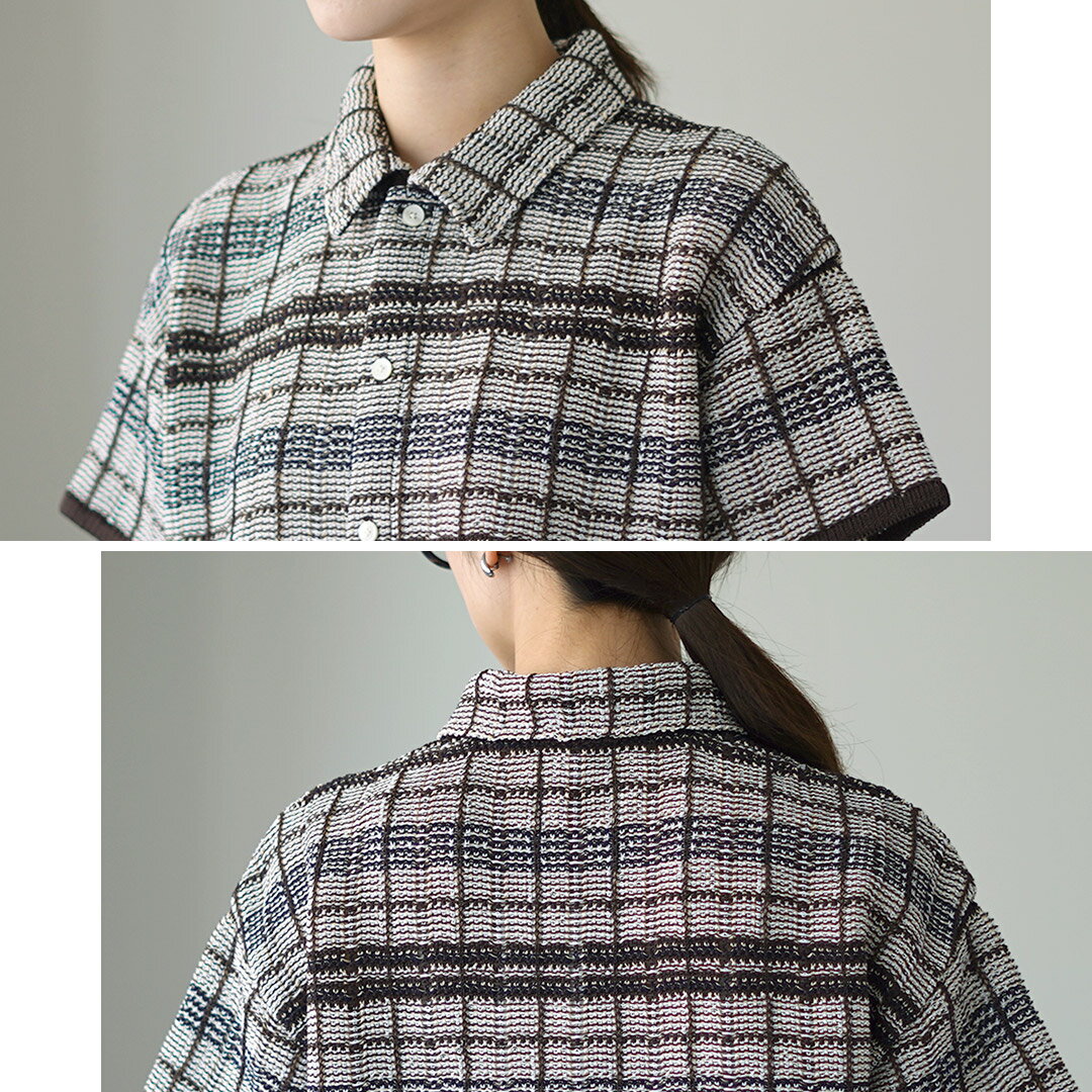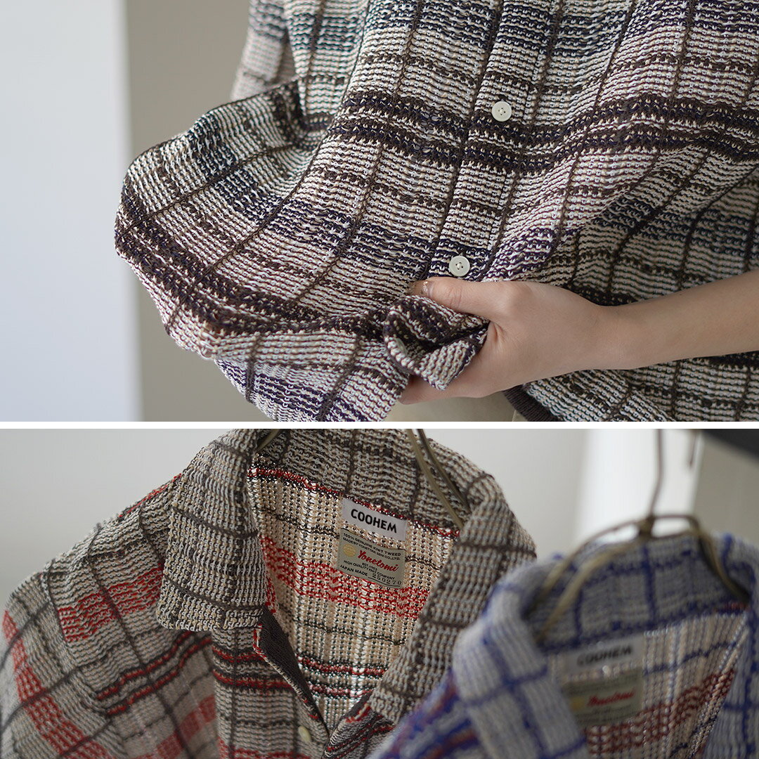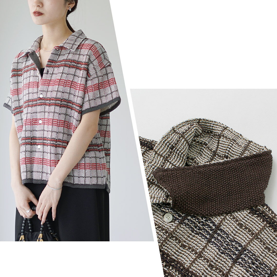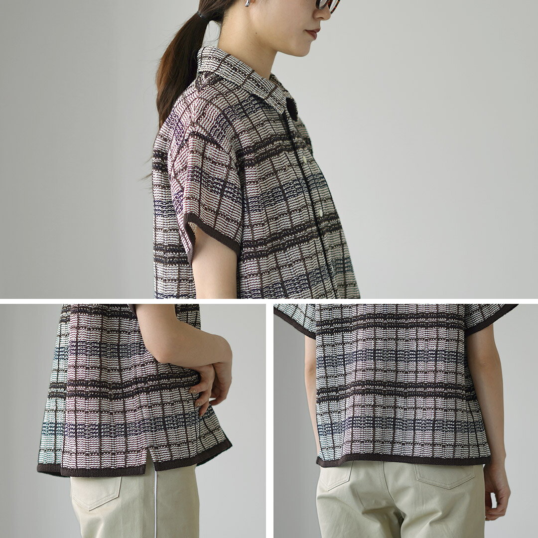 【10%OFFクーポン対象】COOHEM(コーヘン) スカシ チェック ツィードシャツ / レディース サマーニット ポロシャツ 半袖 襟 透かし編み 春夏 日本製