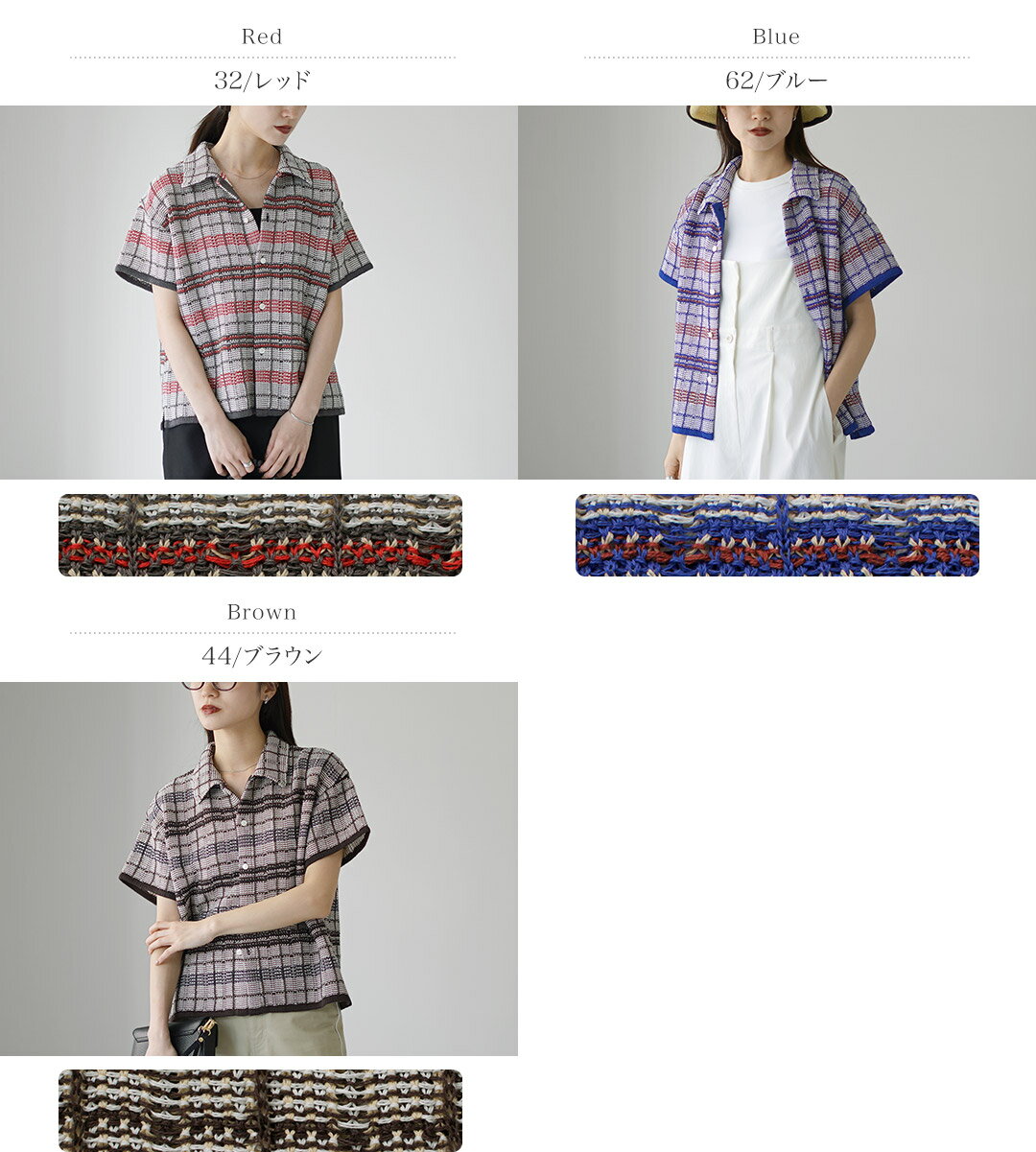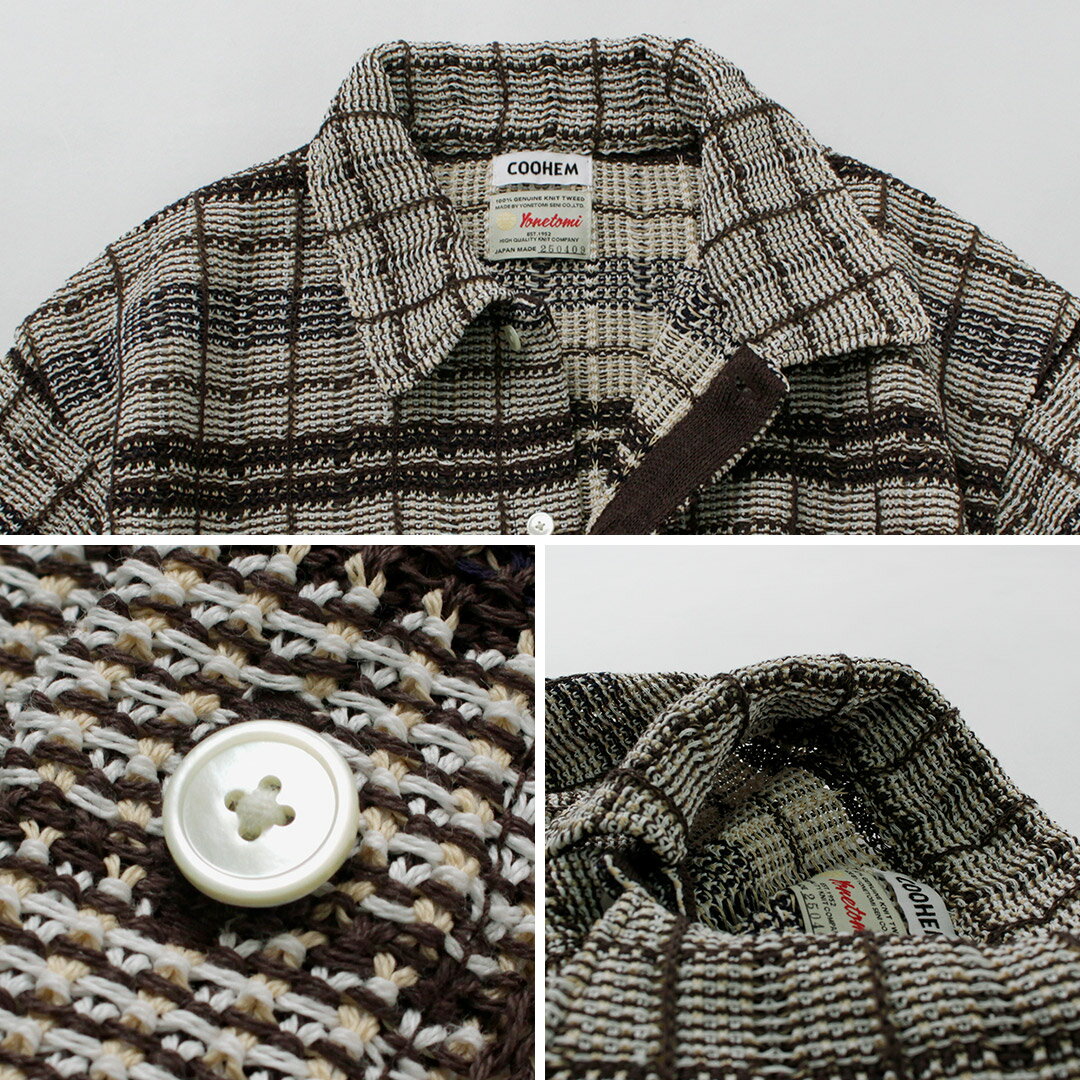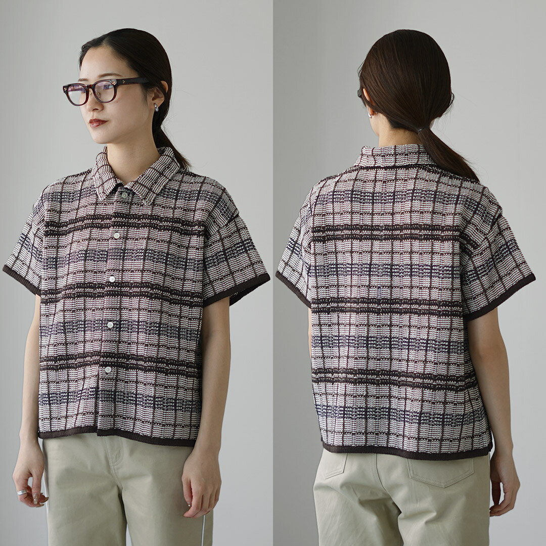【10%OFFクーポン対象】COOHEM(コーヘン) スカシ チェック ツィードシャツ / レディース サマーニット ポロシャツ 半袖 襟 透かし編み 春夏 日本製