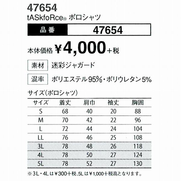 半袖ポロシャツ タスクフォース 47654 4L 5L 迷彩ジャガード tASkfoRce