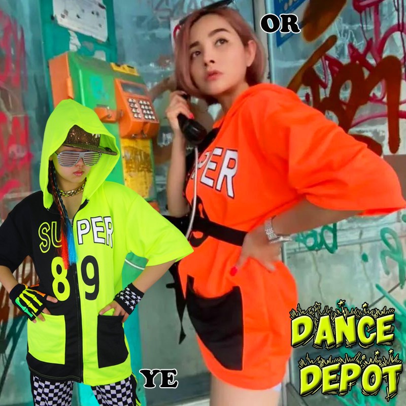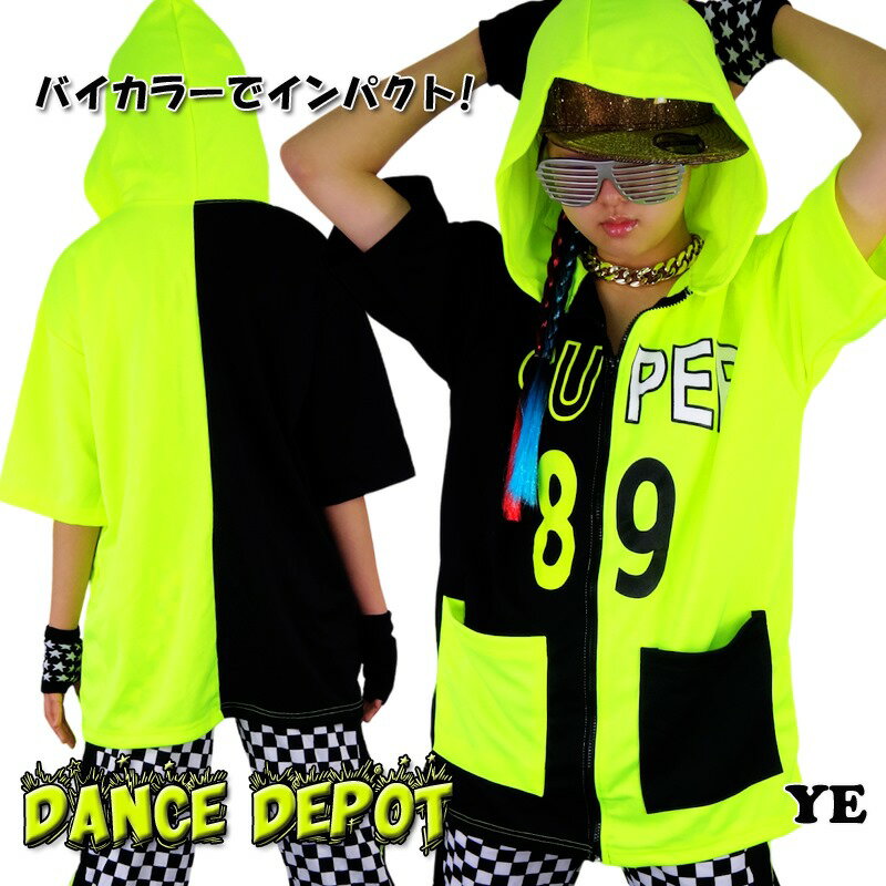 バイカラー 半袖 ジップパーカー (A0489) ダンス ダンス衣装 キッズ 衣装 レディース ユニセックス パーカー ジップアップ 半袖 バイカラー ブラック ネオン ネオンカラー ヒップホップ ストリート K-POP 発表会 コンサート イベント 柔らか 伸縮