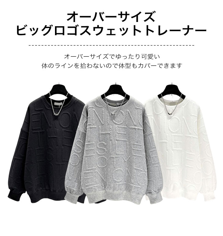 【クーポン利用で1,980円】【即納】 裏起毛タイプ登場★ ラウンドネック ロゴ カットソー 長袖 トレーナー トップス レディース 可愛い カジュアル シンプル 秋 冬 モノトーン 無地 韓国ファッション 【top1020】【予約販売:12/18〜12/25発送予定】
