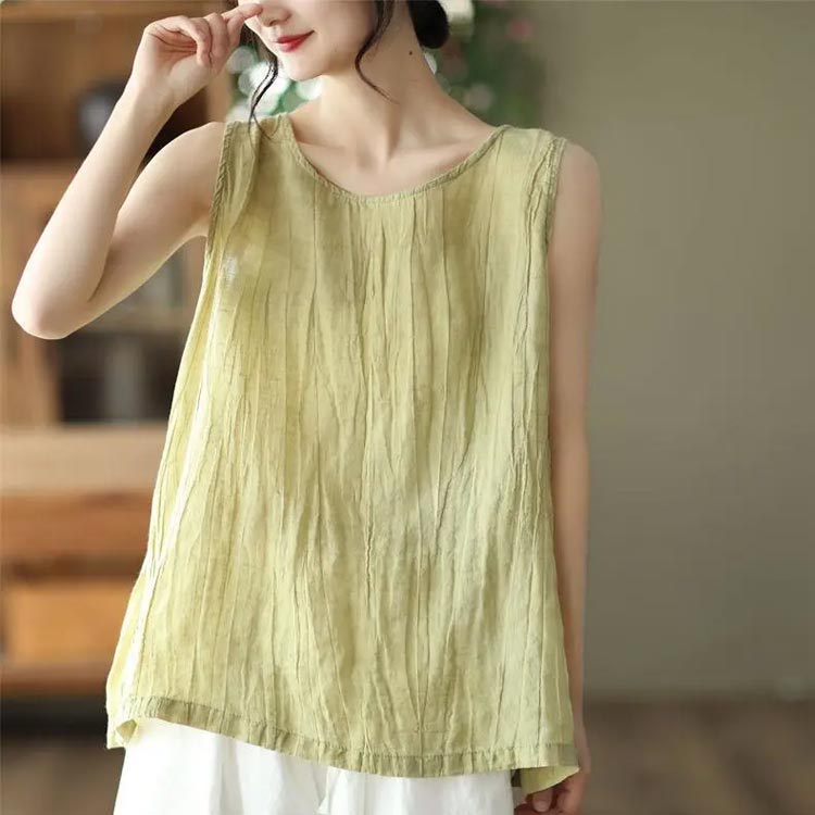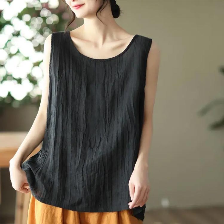クルーネック 【2枚セット】ノースリーブトップス 袖なし ブラウス 送料無料 綿 夏服 タンクトップ ルームウエア トップス ゆったり ナチュラル 部屋着 レディース シワ感 綿
