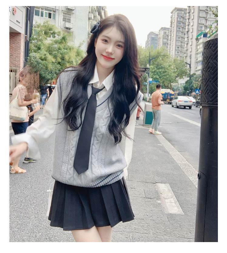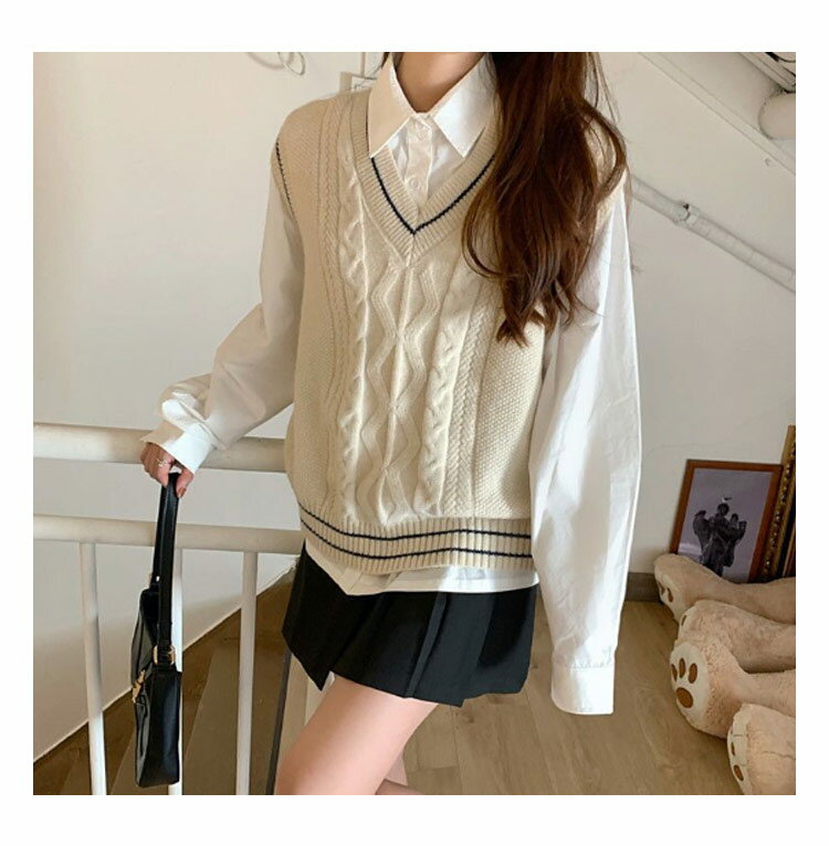 【送料無料】ニットベスト スクールベスト Vネック ライン入り ケーブル編み レディース 学生 女子 制服 学生服 ニットベスト プルオーバー スクールセーター トップス 秋服 秋物 ゆったり シンプル かわいい